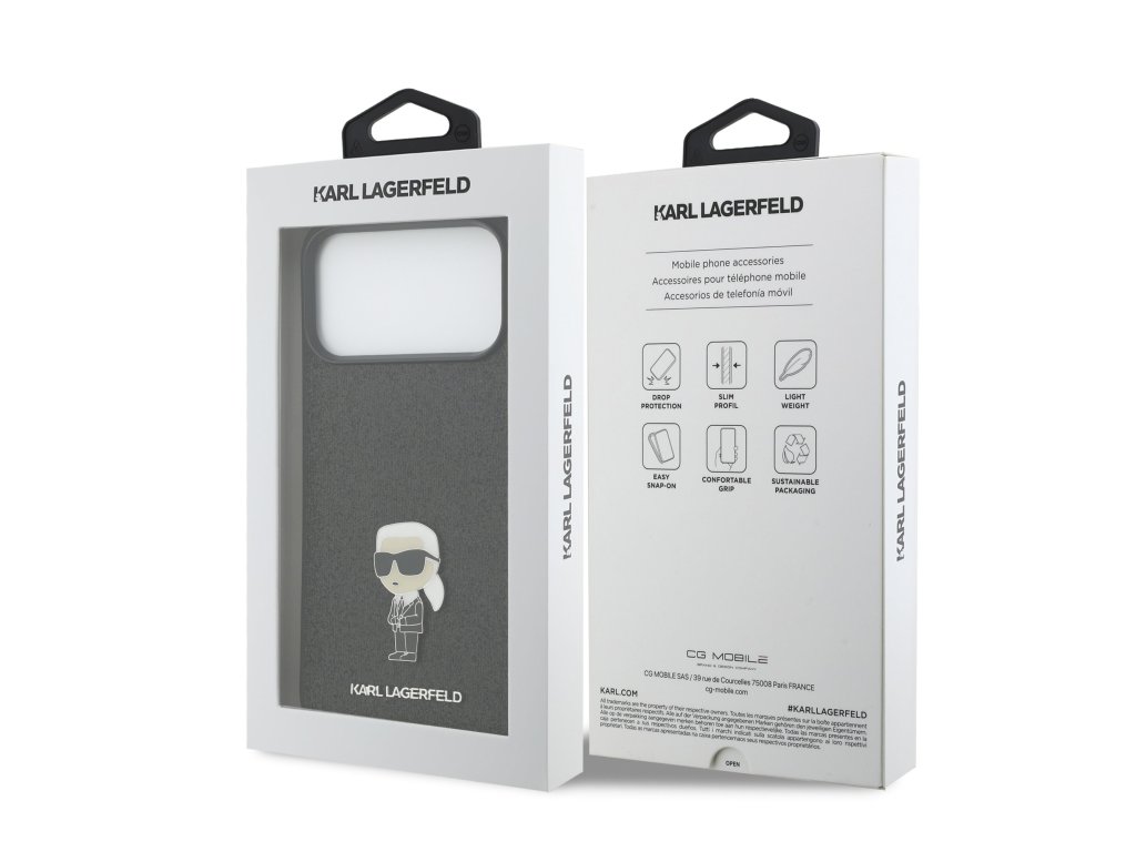 Karl Lagerfeld Fixed Glitter Metal Ikonik Zadní Kryt pro iPhone 17 Pro Max Black
