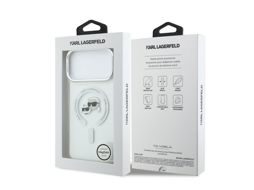 Karl Lagerfeld IML K&CH Heads Metal Frame MagSafe zadní kryt je dokonalý doplněk pro váš telefon i váš outfit, který kombinuje funkčnost a styl v jednom.Tento kryt je vyroben z kombinace pevného PC plastu na zadní straně a TPU měkkého plastu na bocích, což vytváří dokonalou symbiózu odolnosti a pohodlí.