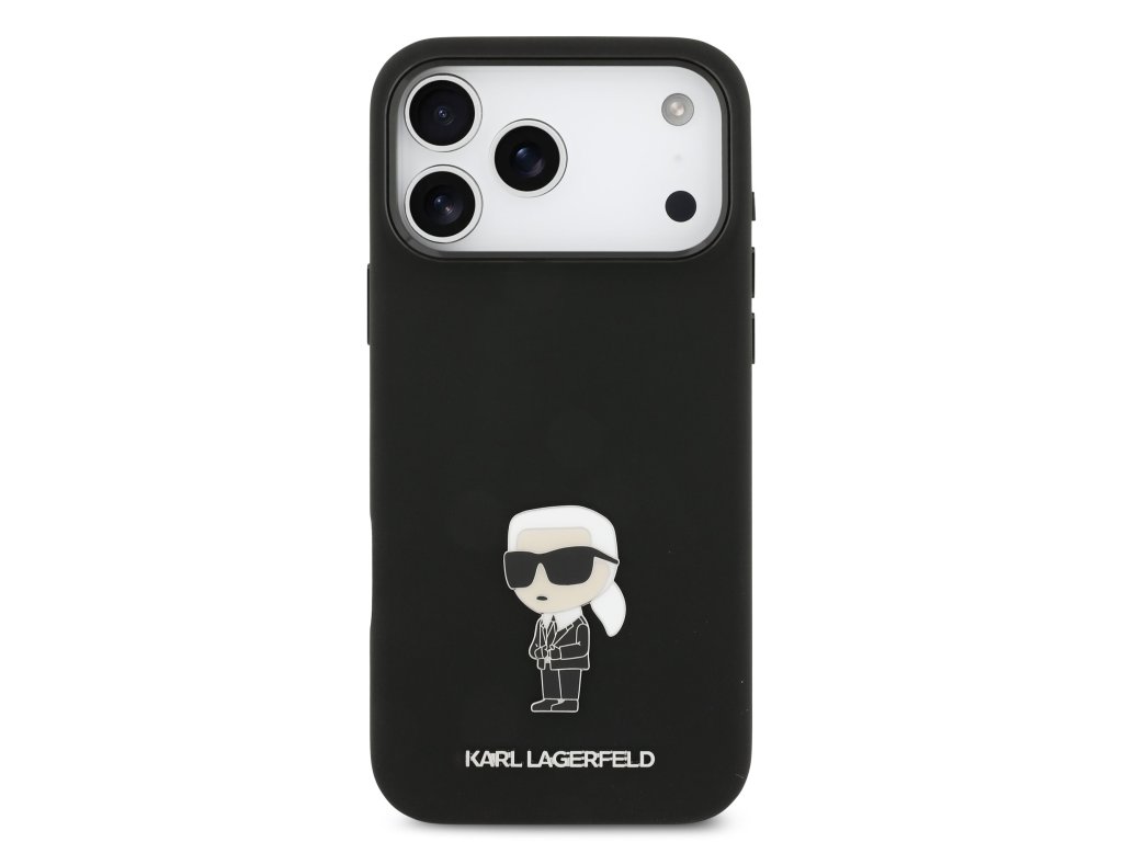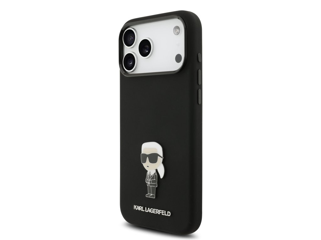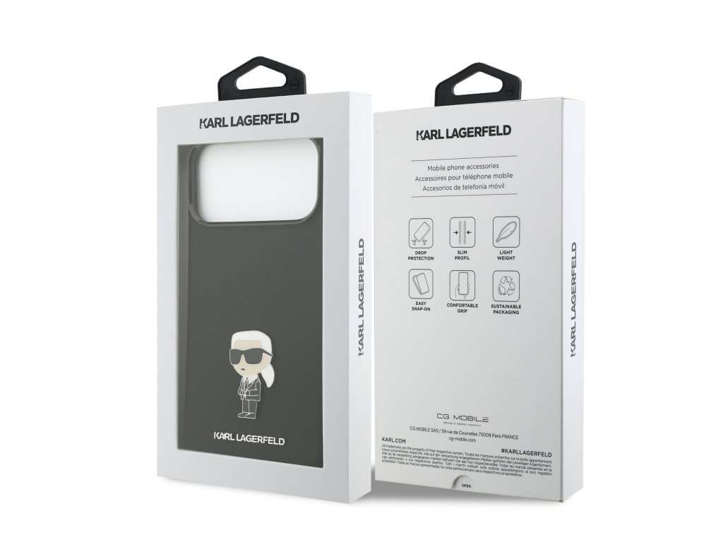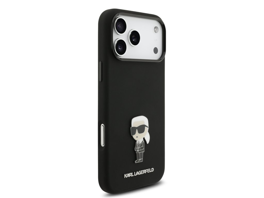 Karl Lagerfeld Liquid Silicone Metal Ikonik Zadní Kryt pro iPhone 17 Pro Max Black