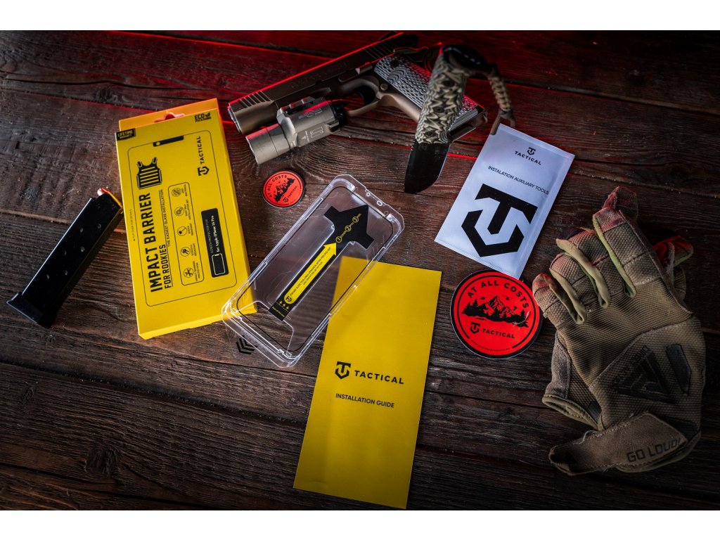 Co dostaneš: Tactical Glass, dust-free aplikátor,čistící sada, Tactical samolepka, instalační manuál,