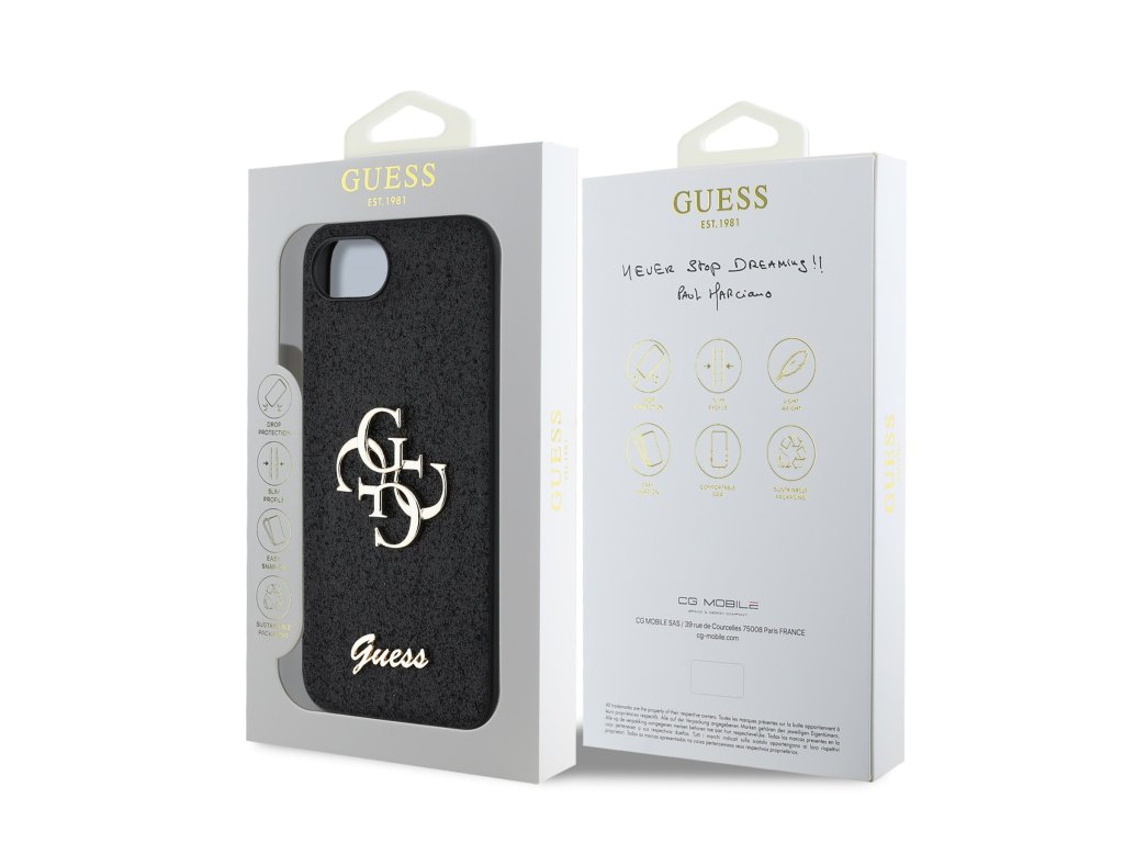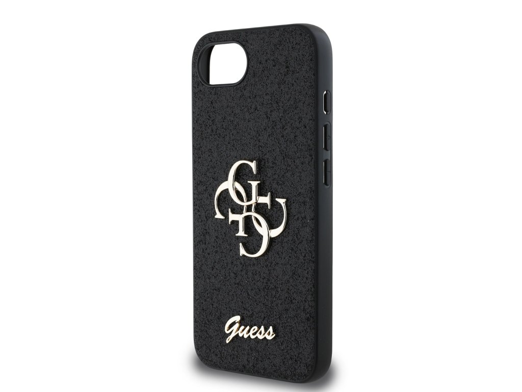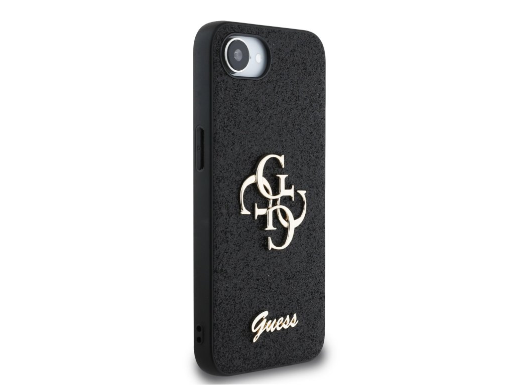Guess PU Fixed Glitter 4G Metal Logo Zadní Kryt pro iPhone 16e Black