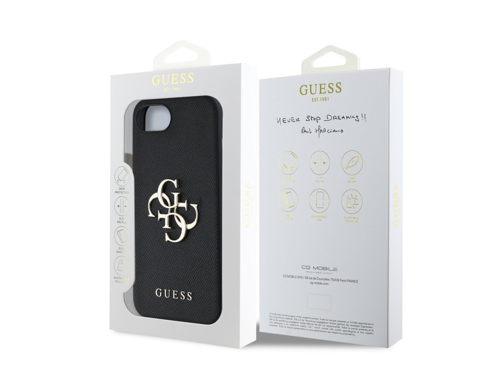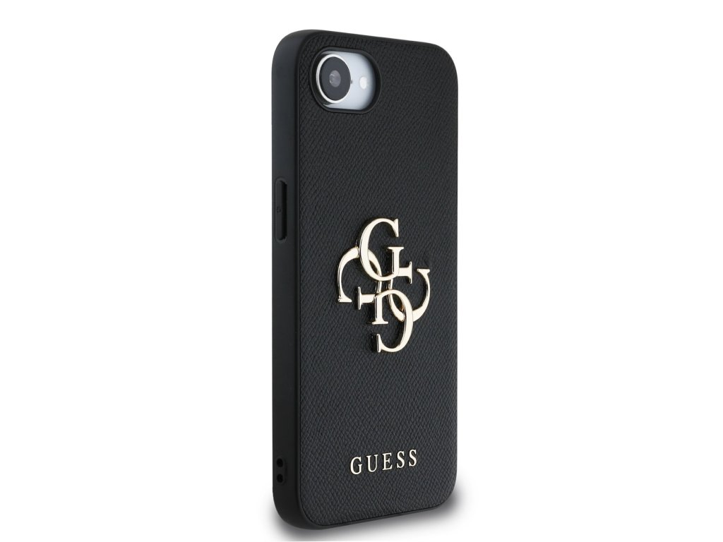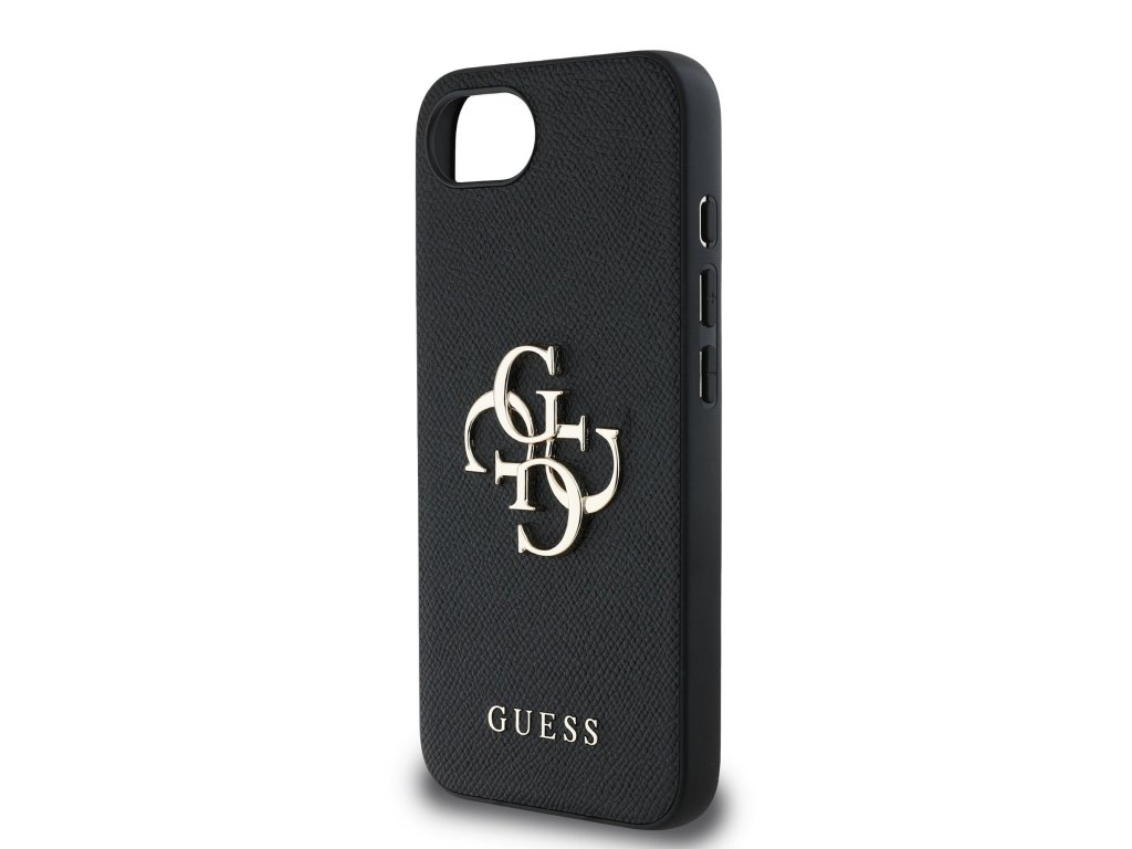 Guess PU Grained 4G Metal Logo Zadní Kryt pro iPhone 16e Black