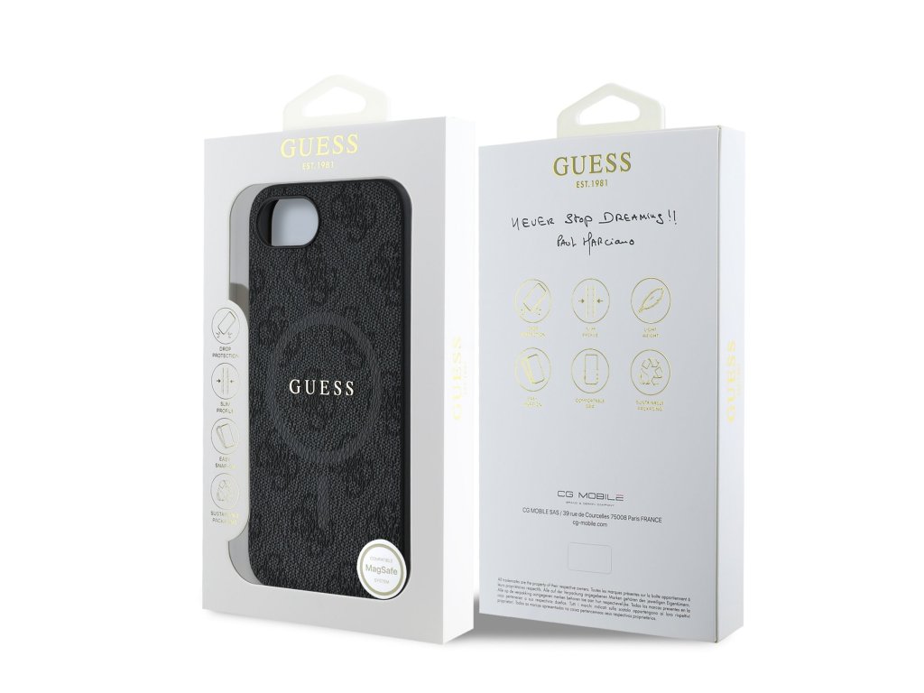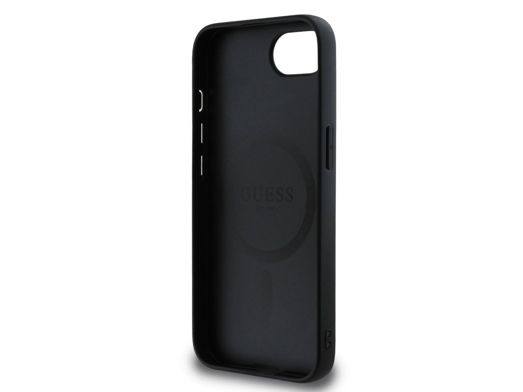 Guess PU Leather 4G Colored Ring MagSafe Zadní Kryt pro iPhone 16e Black
