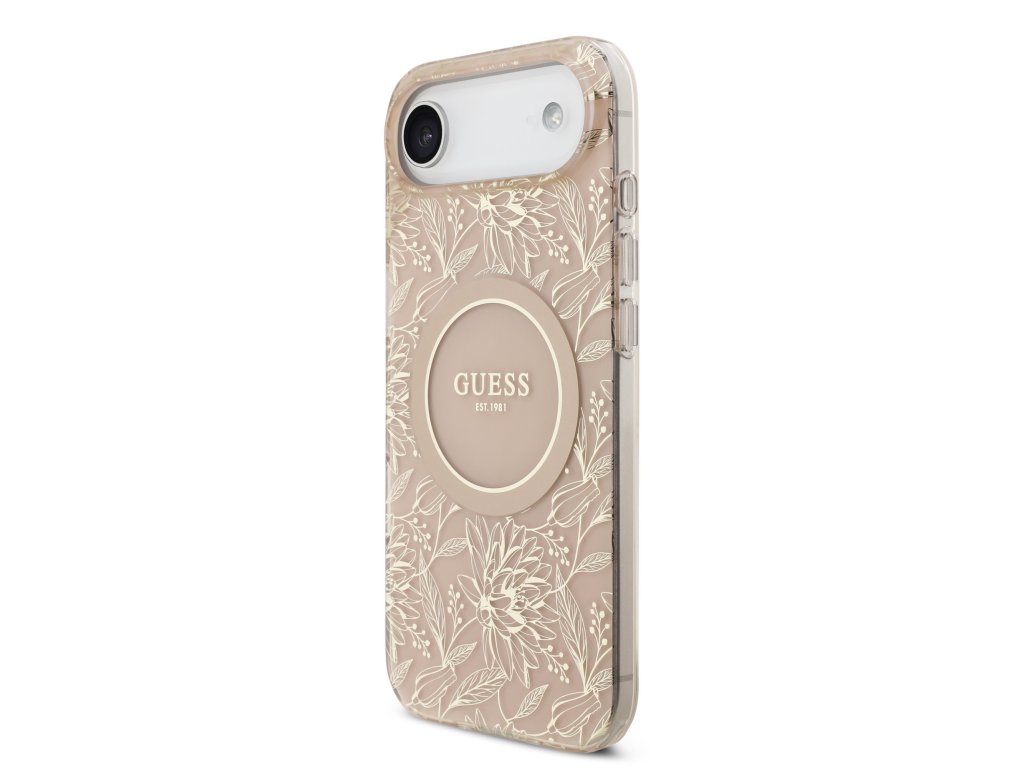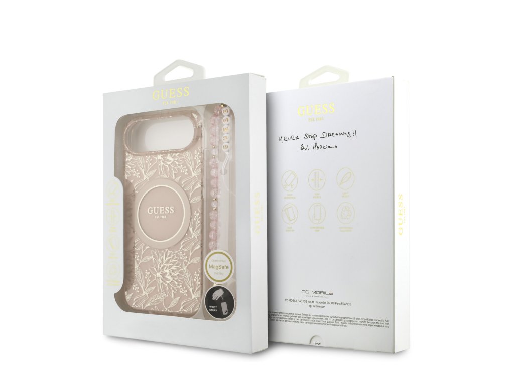 Guess IML Flowers Allover Strap MagSafe Zadní Kryt pro iPhone Air Pink