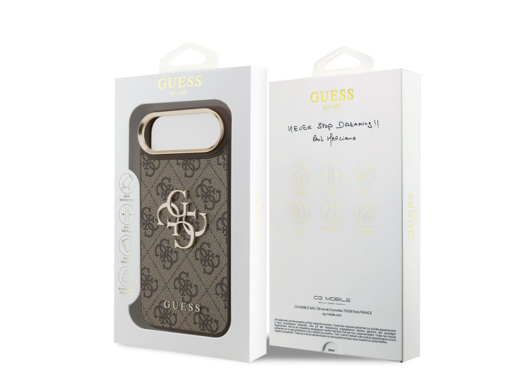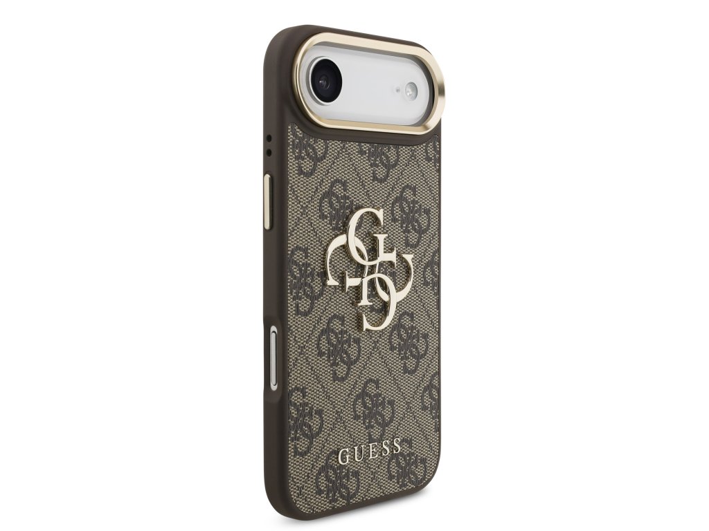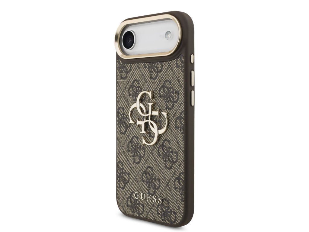 Guess PU Leather 4G Metal Logo Gold Frame Zadní Kryt pro iPhone Air Brown