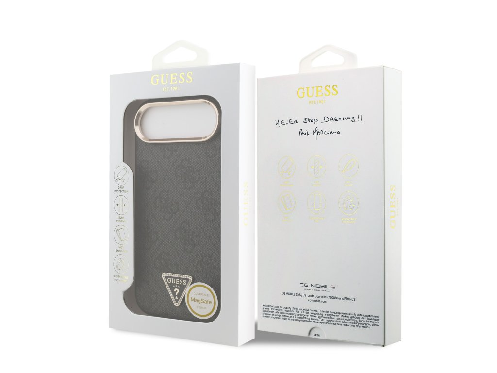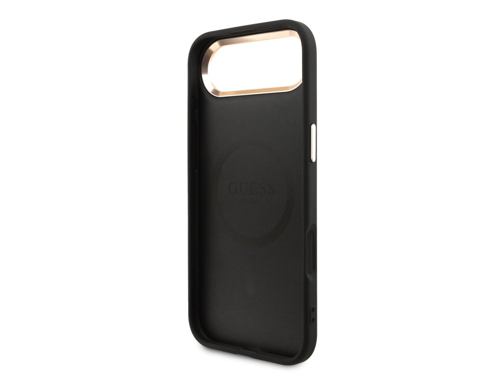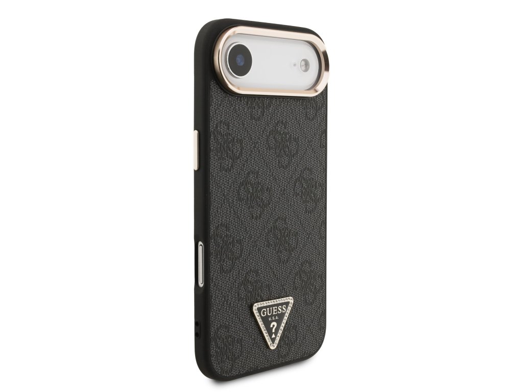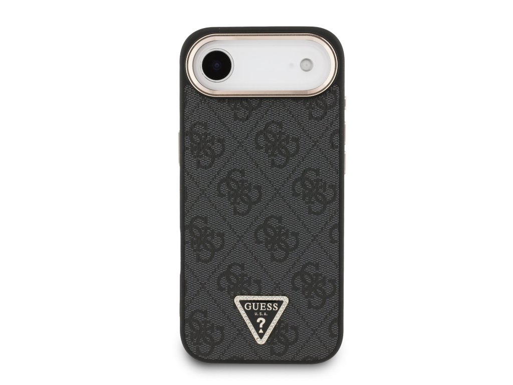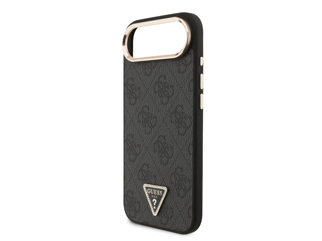 Guess PU Leather 4G Strass Triangle Logo Gold Frame MagSafe Zadní Kryt pro iPhone Air Black