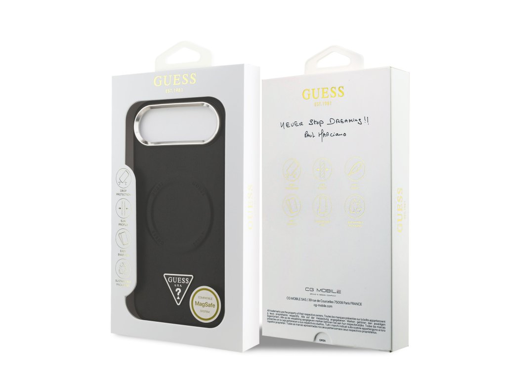 Guess PU Leather Triangle Logo MagSafe Zadní Kryt pro iPhone Air Black