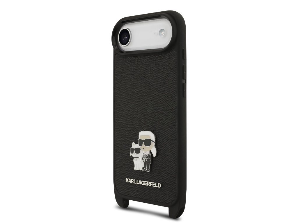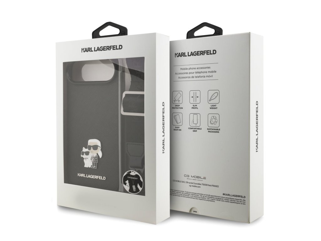 Karl Lagerfeld Saffiano Crossbody Popruh Metal Karl and Choupette Zadní Kryt pro iPhone Air Black