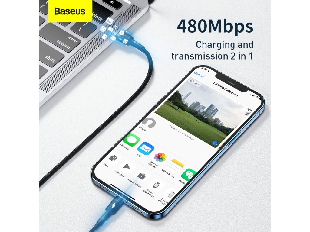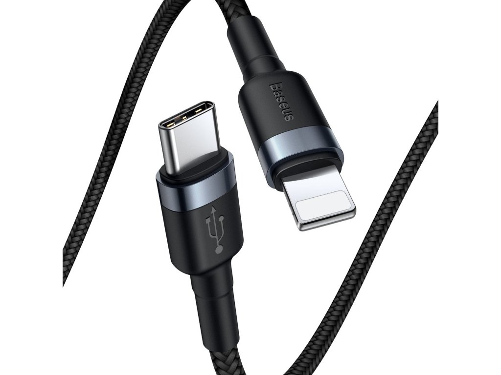 Baseus Cafule nabíjecí a datový kabel USB-C na Lightning s hliníkovými koncovkamiŠpičkový nabíjecí a datový kabel s hliníkovými koncovkami a nylonovým opletením.
