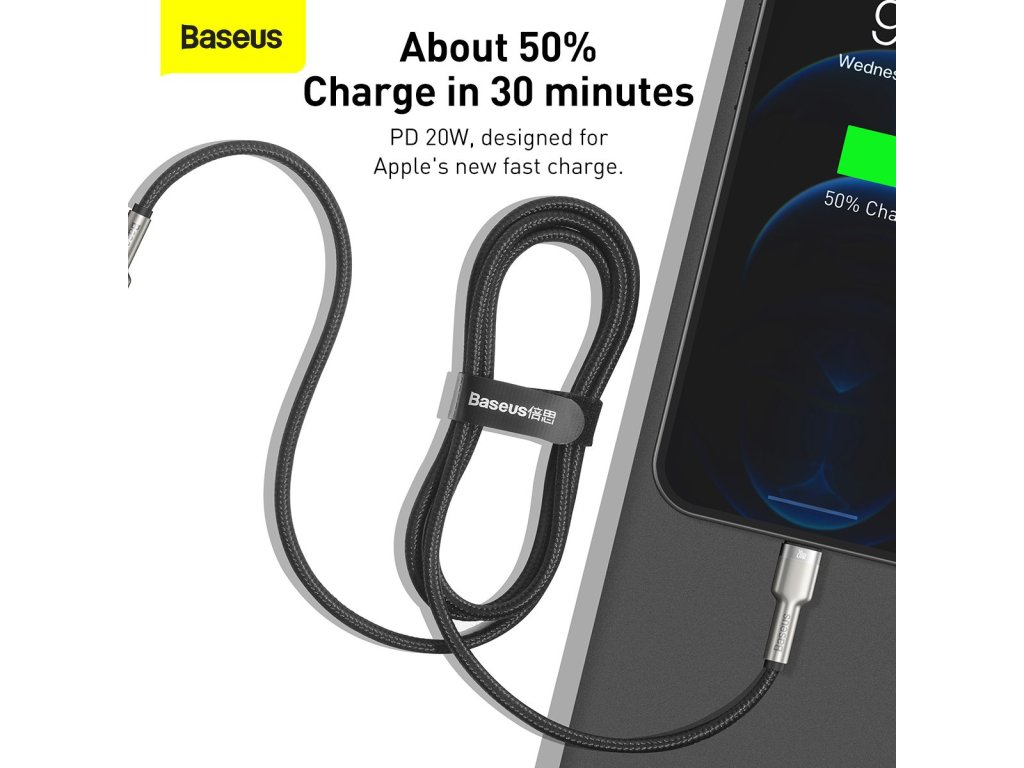 Baseus Cafule Series Metal Data Kabel je ideální volbou pro rychlé nabíjení Apple zařízení.Tento kabel podporuje PD 20W nabíjení, což umožňuje nabít iPhone na 50 % během pouhých 30 minut.