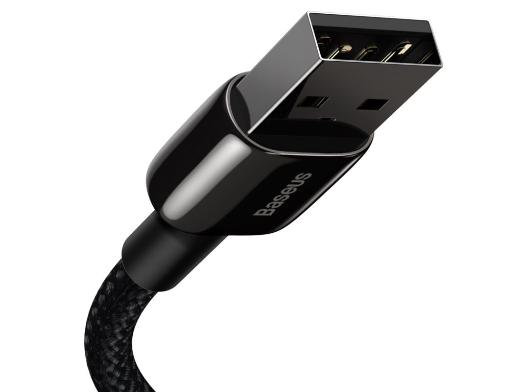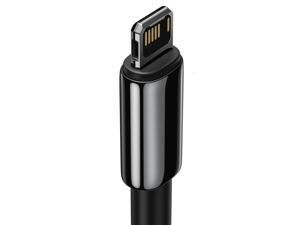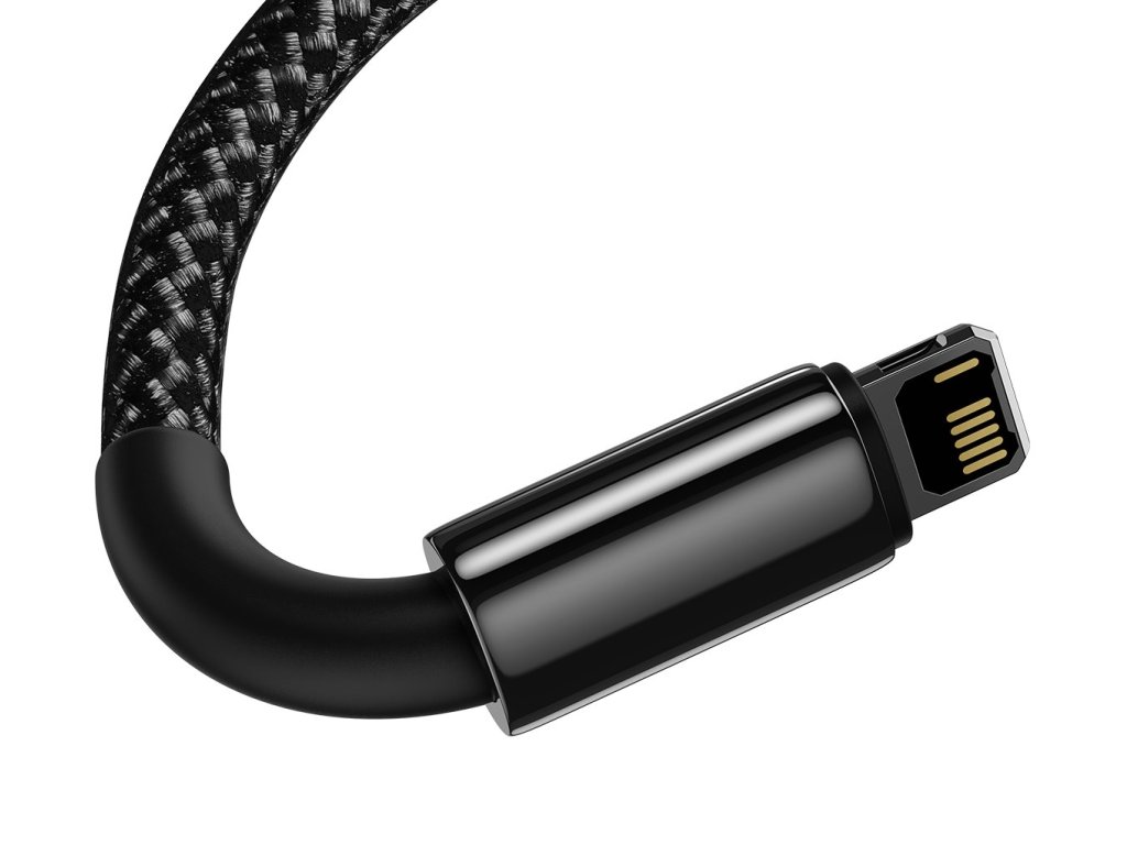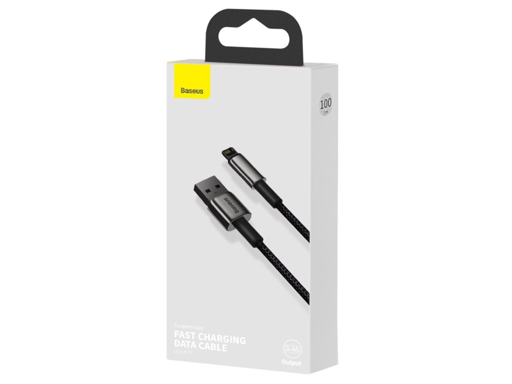 Baseus Tungsten Gold kabel pro nabíjení zařízení s konektorem Lightning z USB konektoru nabíječky nebo notebooku. nabíječky nebo konektoru notebooku.Kabel je opletený pro maximální pevnost a dlouho životnost, podporuje nabíjecí proud 2.4A