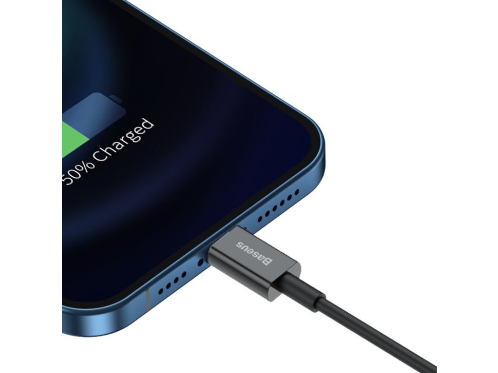 Baseus Superior USB kabel pro nabíjení zařízení s Lightning konektorem. Podporuje standartní nabíjení pro Apple zařízení 2.4ADélka kabelu je 1m, je vyroben z odolného ABS materiálu, pevnými koncovkami a zesílenými konci kabelu pro dlouhou životnost.