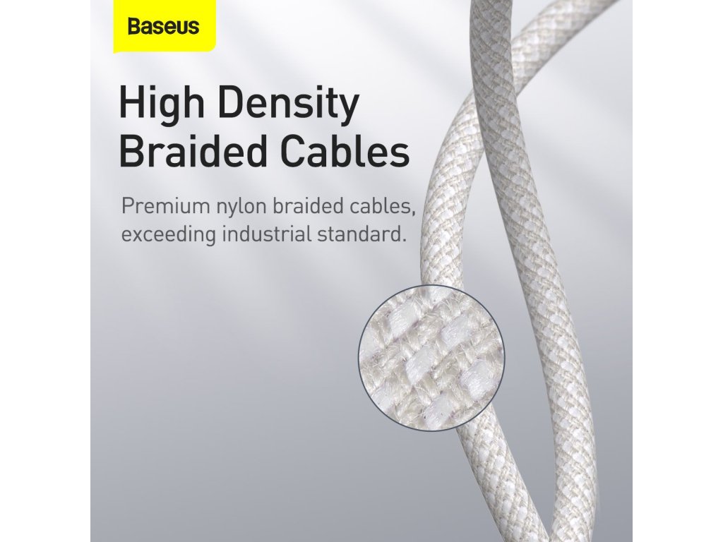 Kabel Baseus High Density Braided Series je navržen tak, aby poskytoval extrémně rychlé a bezpečné nabíjení s podporou technologie Power Delivery s výkonem až 20W.Kromě rychlého nabíjení nabízí také vysokorychlostní přenos dat až 480 Mb/s.