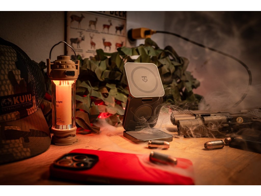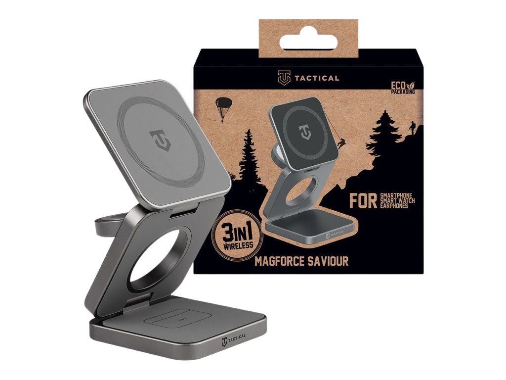 Kompaktní výkon pro elitu. Tactical MagForce Saviour je tvoje ultimátní bezdrátová nabíjecí stanice navržená s důrazem na efektivitu a všestrannost.Tato all-in-one nabíjecí stanice se dá rozložit a dodávat tak energii tvému telefonu, sluchátkům a Apple Watch. Samostatně nebo všem najednou.