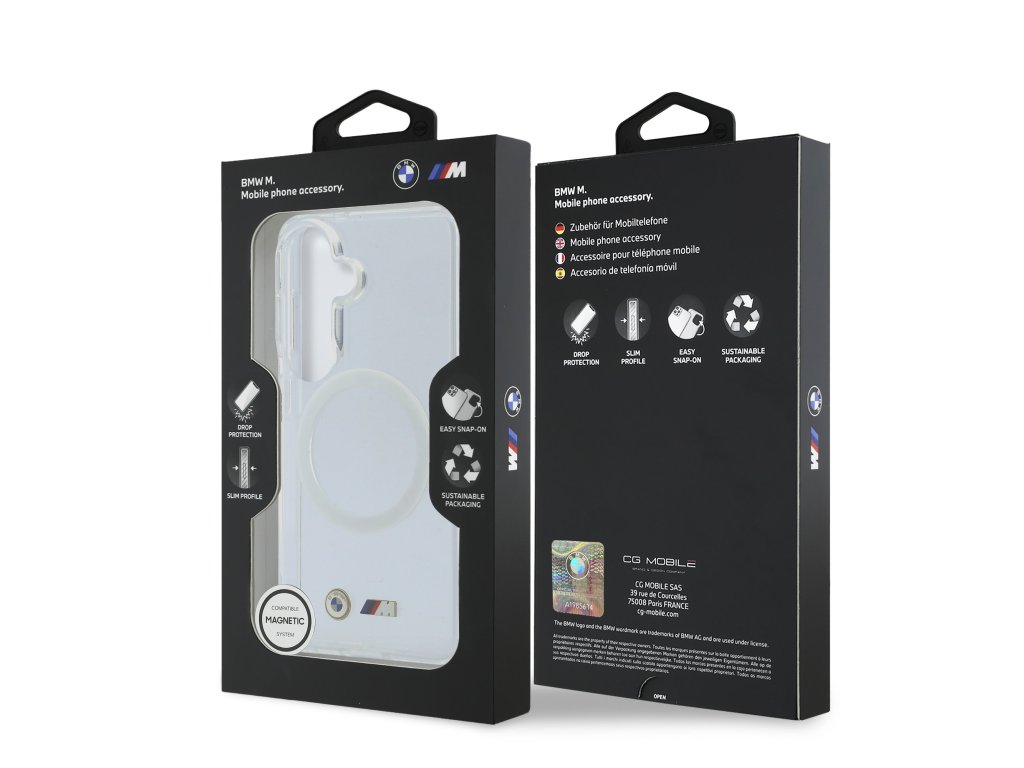 Kryt BMW M IML Metal Logo Magnetic je vynikající volbou pro ty, kteří chtějí pro svůj telefon spojit funkčnost, styl a ochranu.