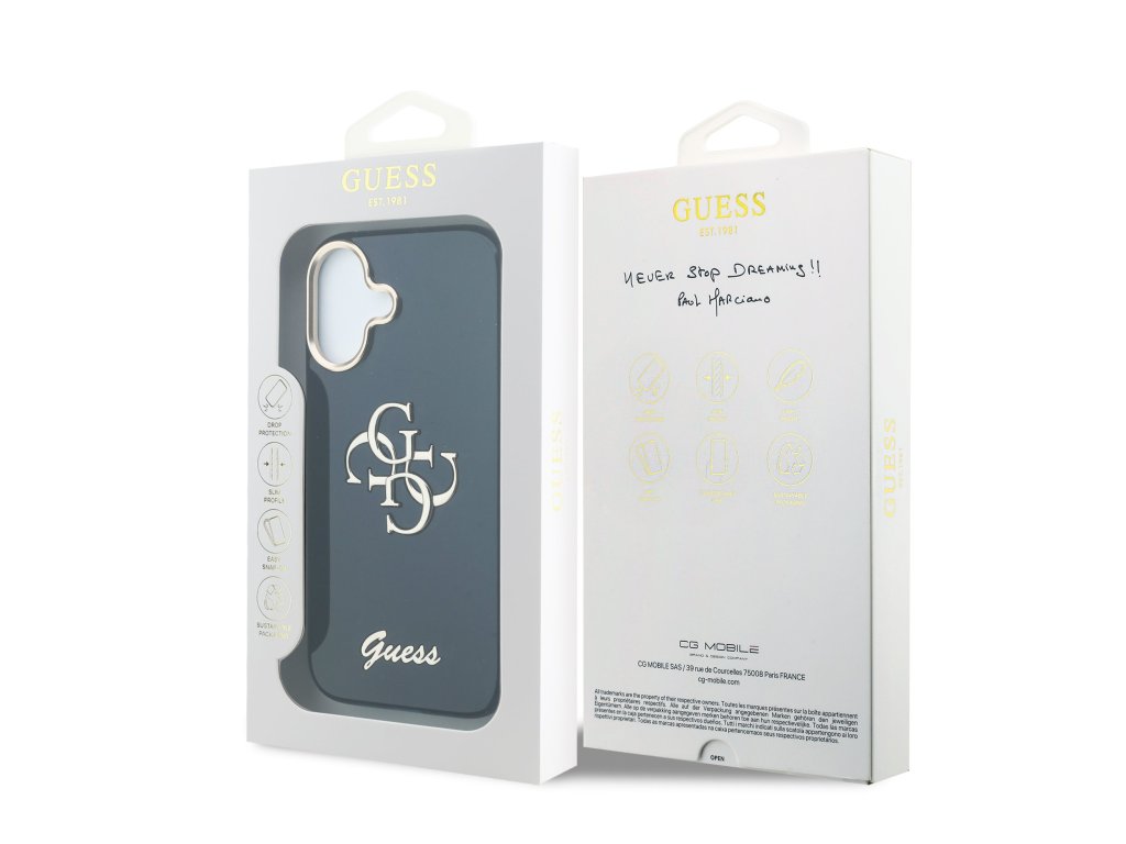Design krytu vyniká kovovým 4G logem Guess na zadní straně, což z něj činí nejen praktický, ale i stylový doplněk, který skvěle doplní váš outfit.