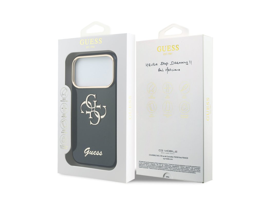 Design krytu vyniká kovovým 4G logem Guess na zadní straně, což z něj činí nejen praktický, ale i stylový doplněk, který skvěle doplní váš outfit.