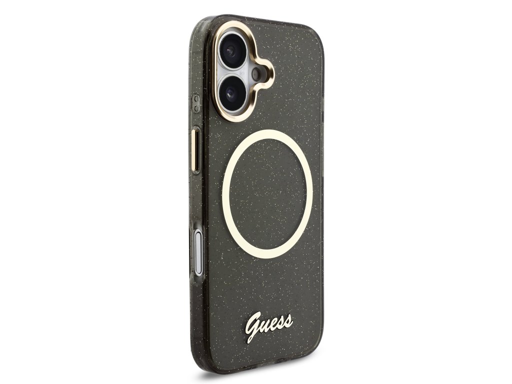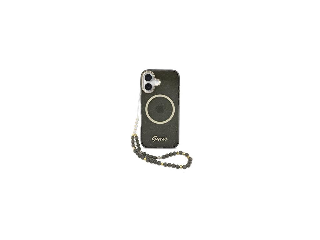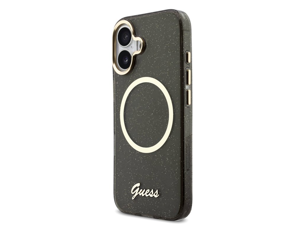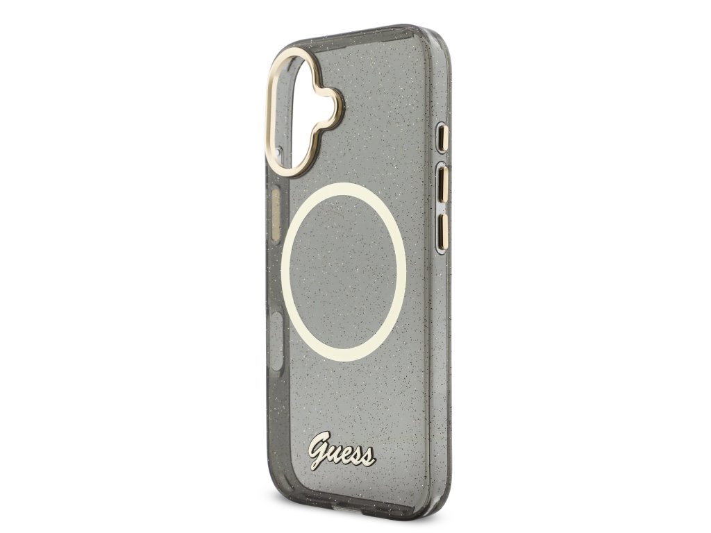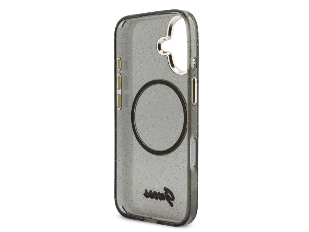 Guess IML Glitter Script Strap MagSafe Zadní Kryt pro iPhone 17 Black