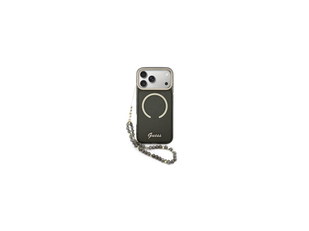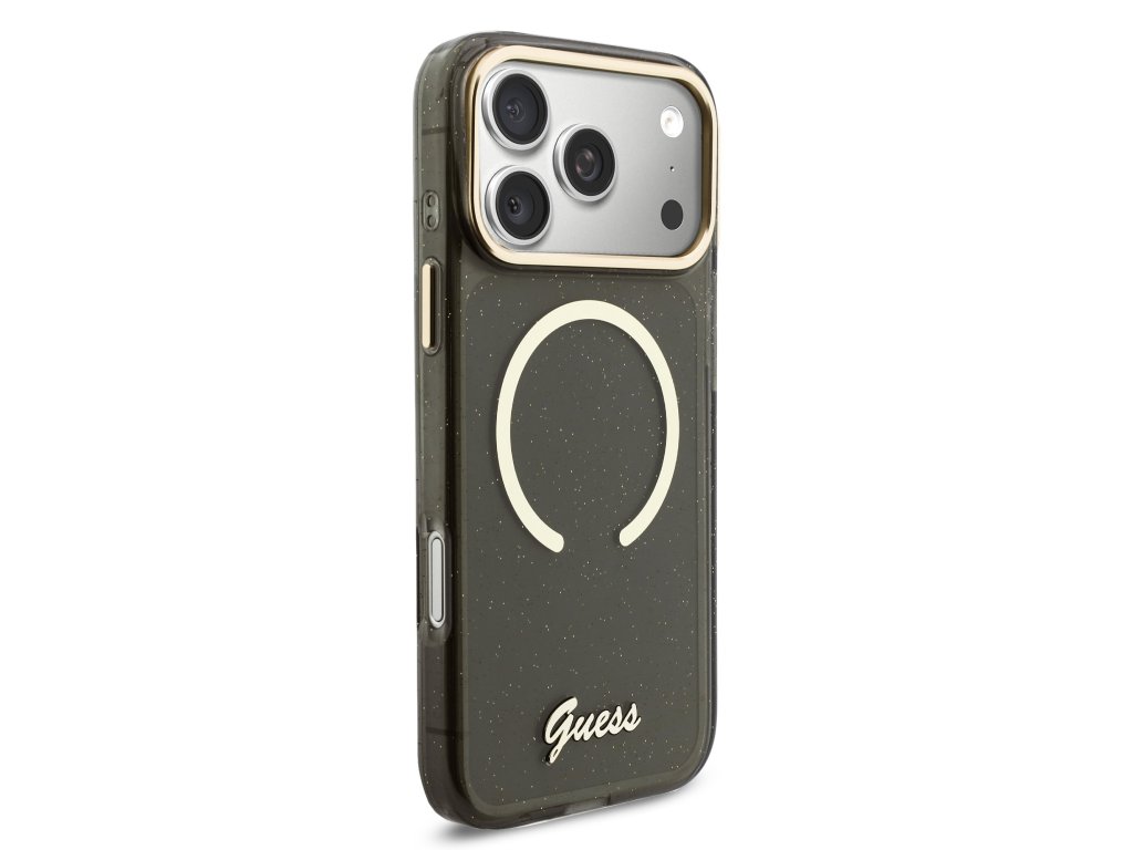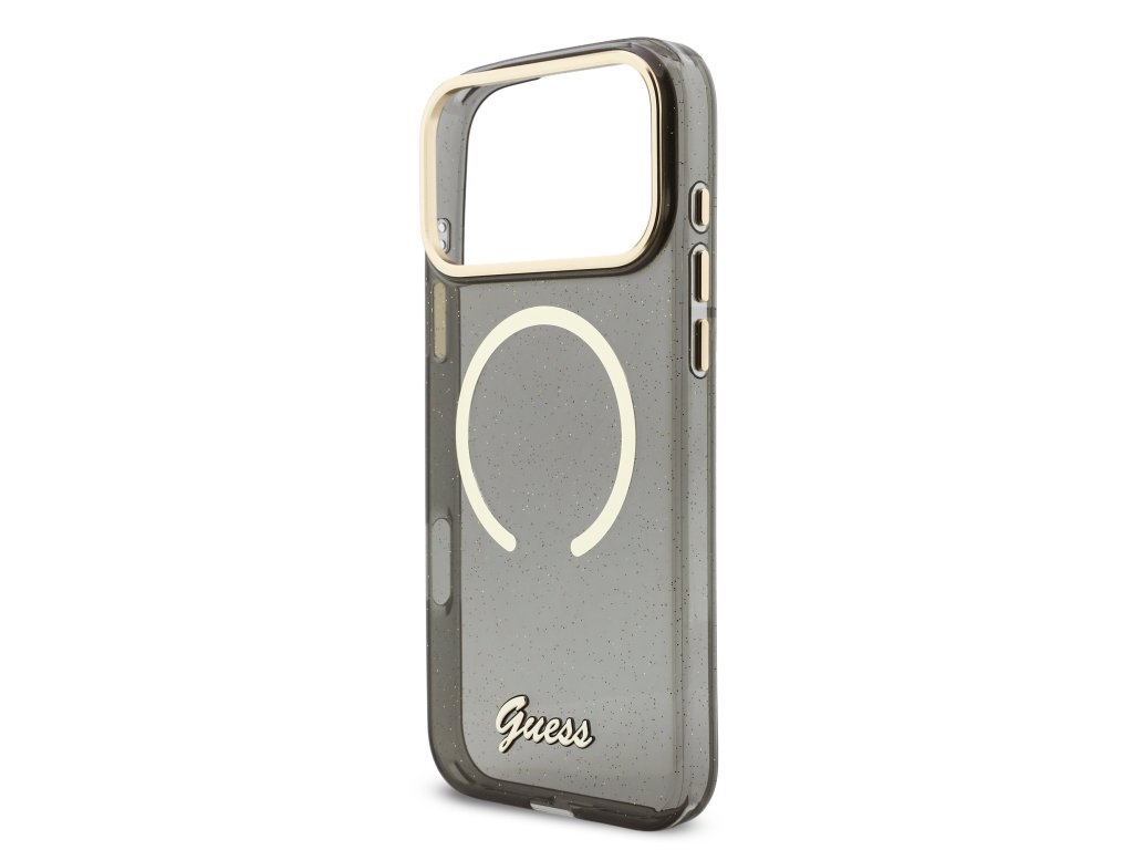 Guess IML Glitter Script Strap MagSafe Zadní Kryt pro iPhone 17 Pro Max Black