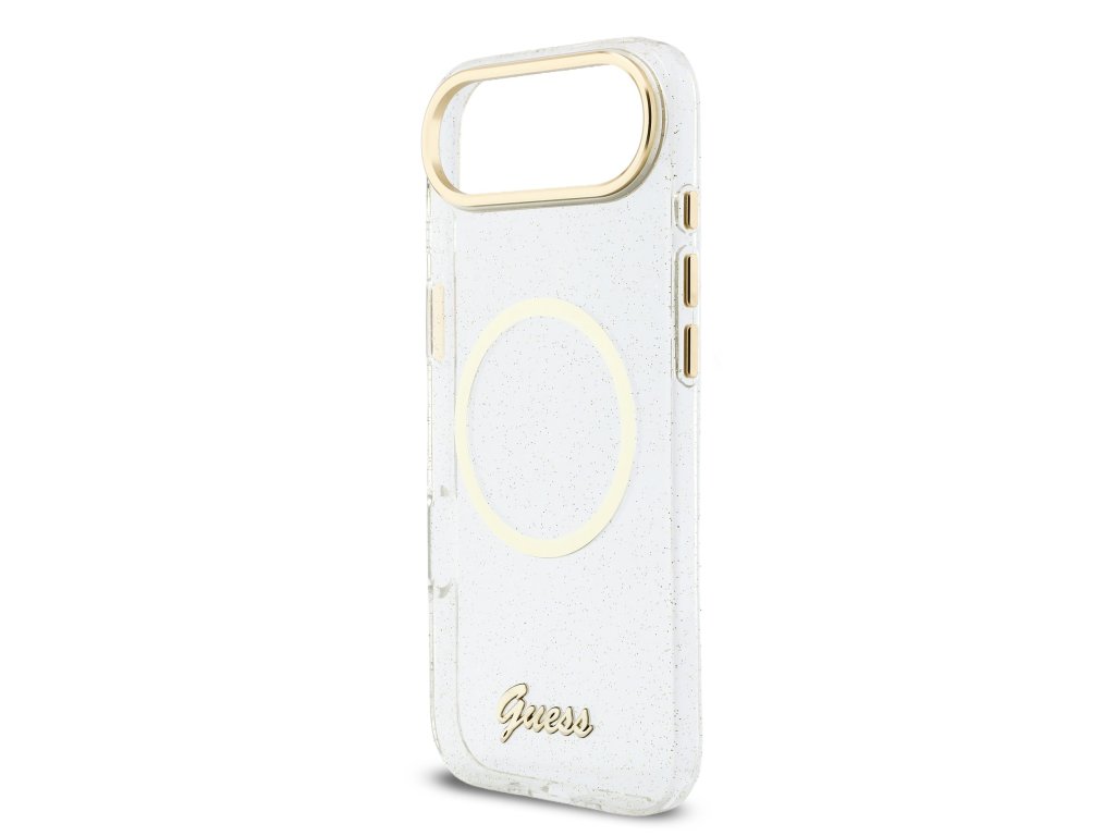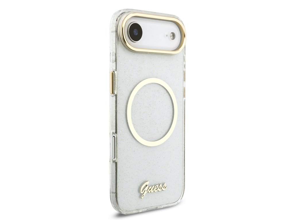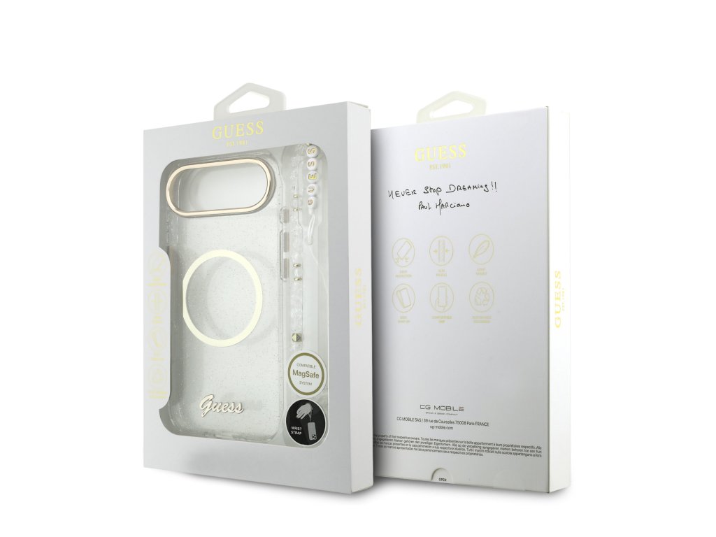 Guess IML Glitter Script Strap MagSafe Zadní Kryt pro iPhone Air Transparent