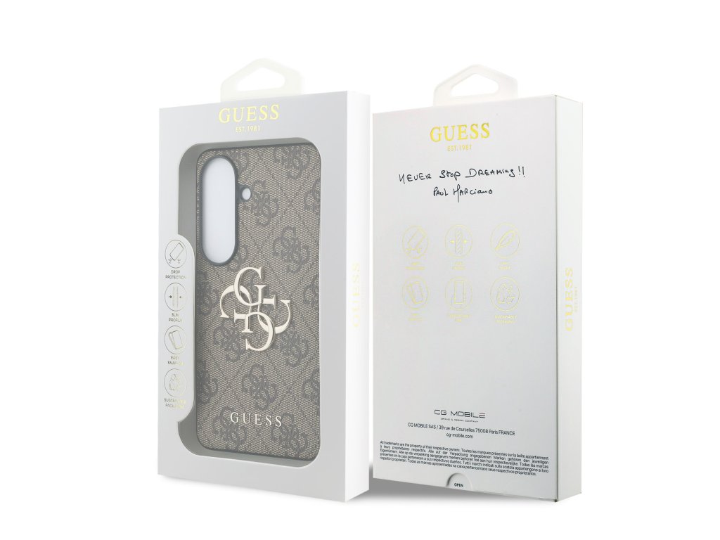 Guess PU 4G Metal Logo Zadní Kryt pro Samsung Galaxy S26+ Brown