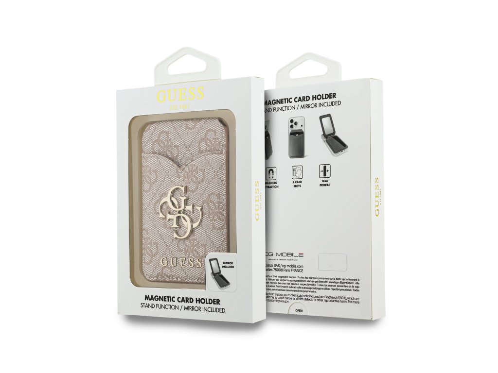Guess PU 4G Mirror MagSafe Cardslot Peněženka se Stojanem Pink