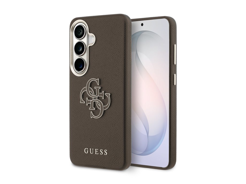 Guess PU 4G Resin Metal Logo Zadní Kryt pro Samsung Galaxy S26+ Brown