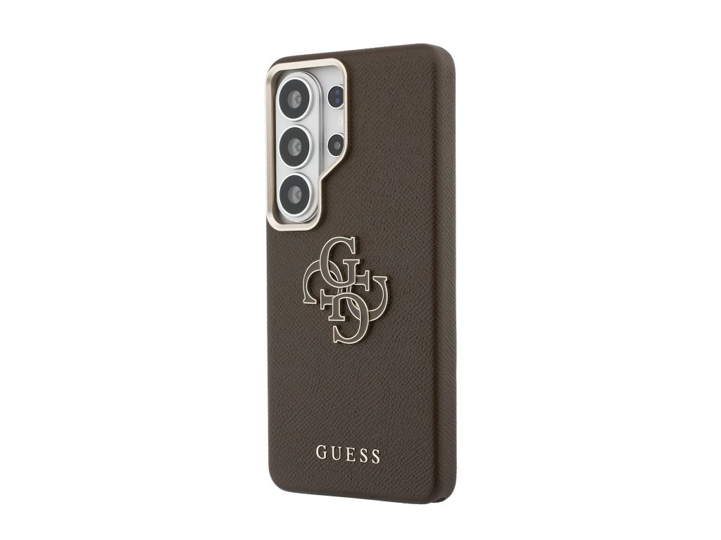 Guess PU 4G Resin Metal Logo Zadní Kryt pro Samsung Galaxy S26 Ultra Brown