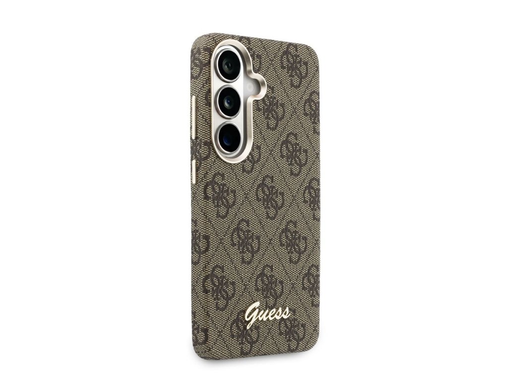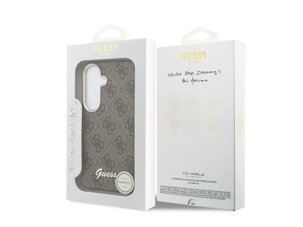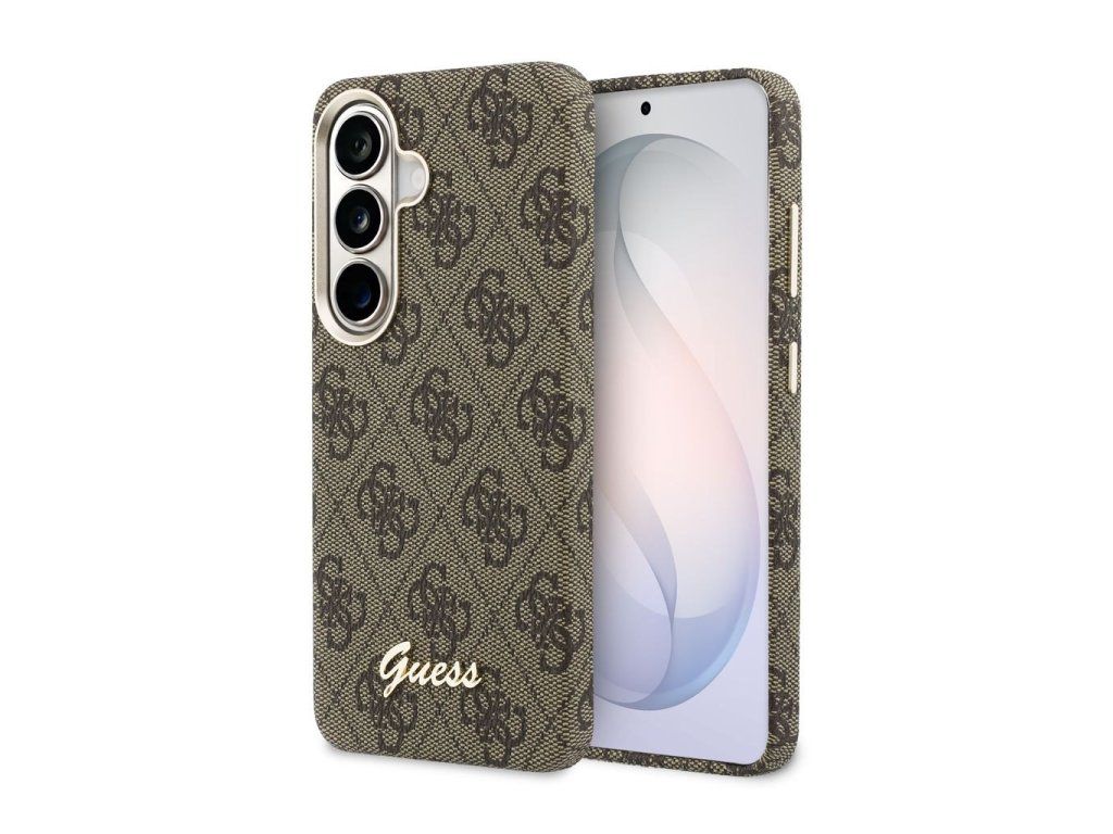 Guess PU 4G Script Metal Logo Magnetic Zadní Kryt pro Samsung Galaxy S26 Brown