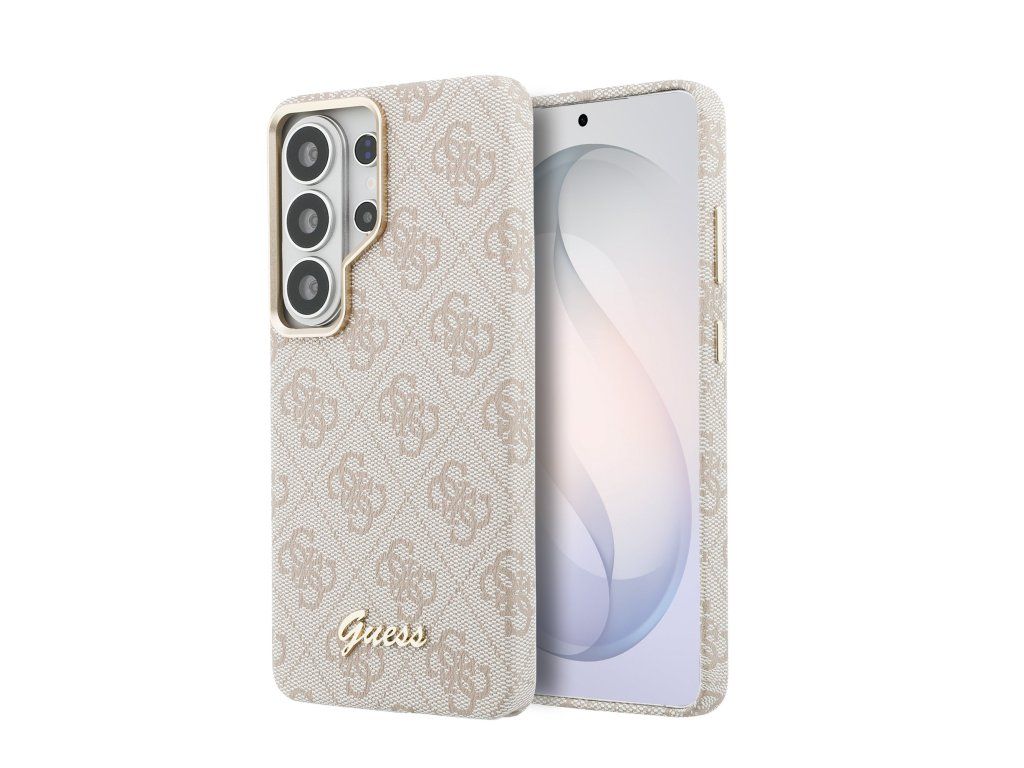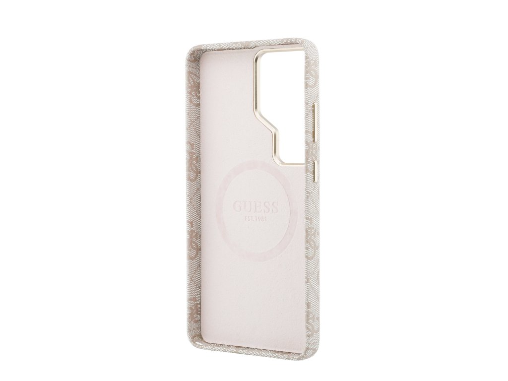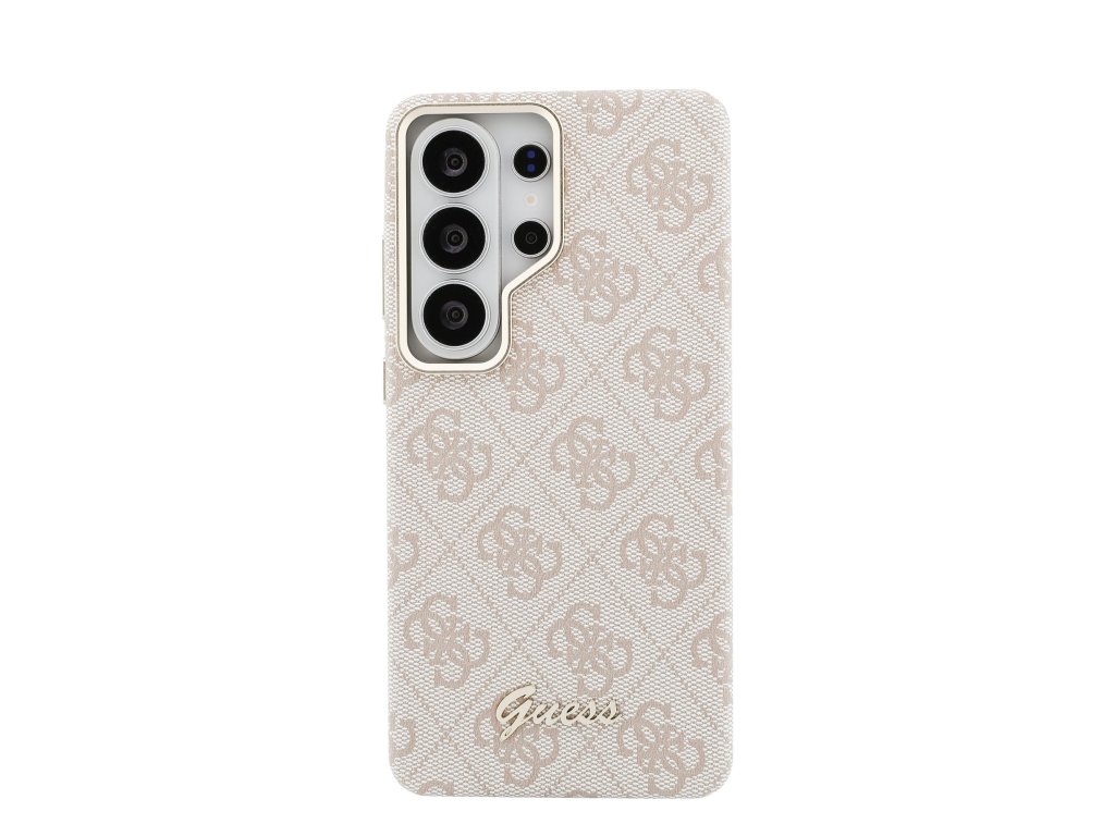 Guess PU 4G Script Metal Logo Magnetic Zadní Kryt pro Samsung Galaxy S26 Ultra Pink