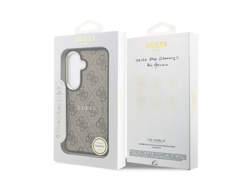 Guess PU Leather 4G Gold Frame Magnetic Zadní Kryt pro Samsung Galaxy S26 Brown