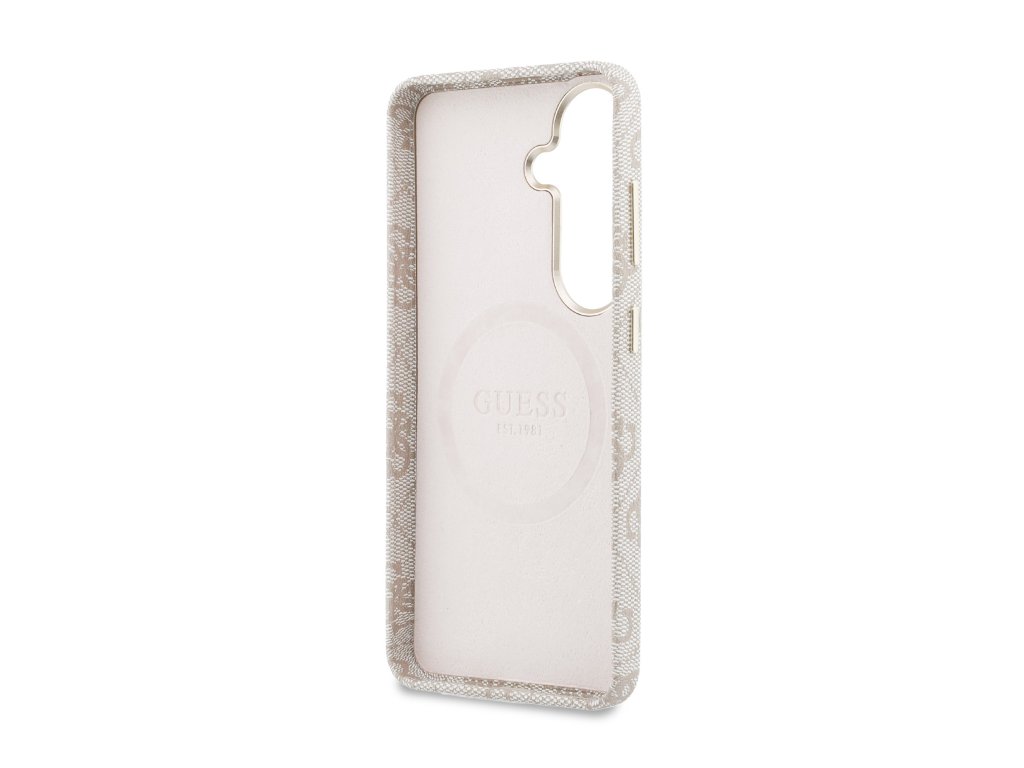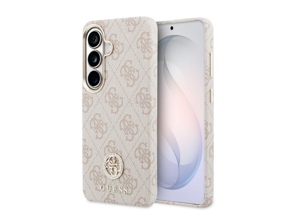 Guess PU Leather 4G Strass Logo Gold Frame Magnetic Zadní Kryt pro Samsung Galaxy S26 Pink