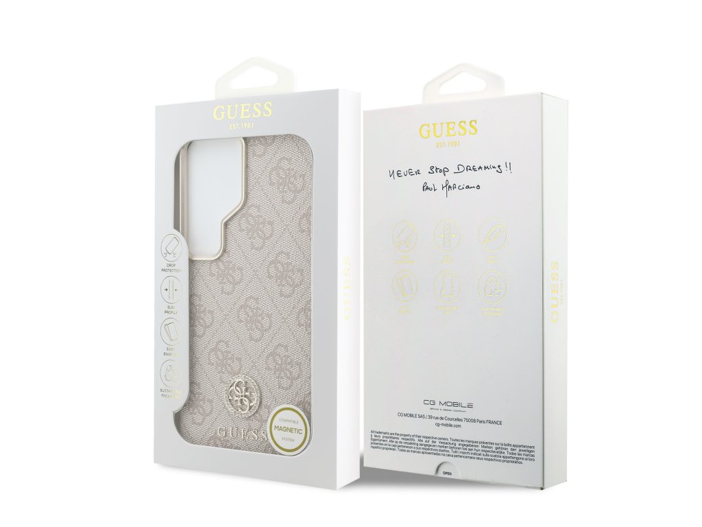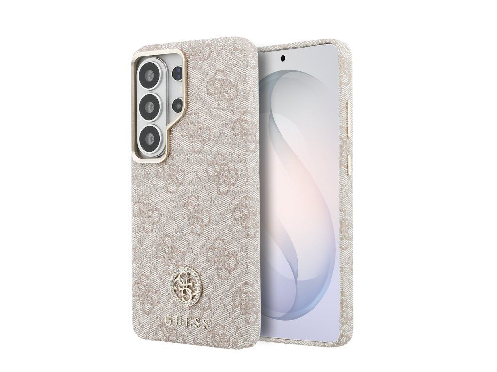 Guess PU Leather 4G Strass Logo Gold Frame Magnetic Zadní Kryt pro Samsung Galaxy S26 Ultra Pink