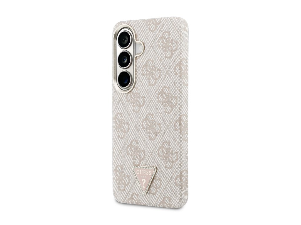 Guess PU Leather 4G Strass Triangle Logo Gold Frame Magnetic Zadní Kryt pro Samsung Galaxy S26 Pink