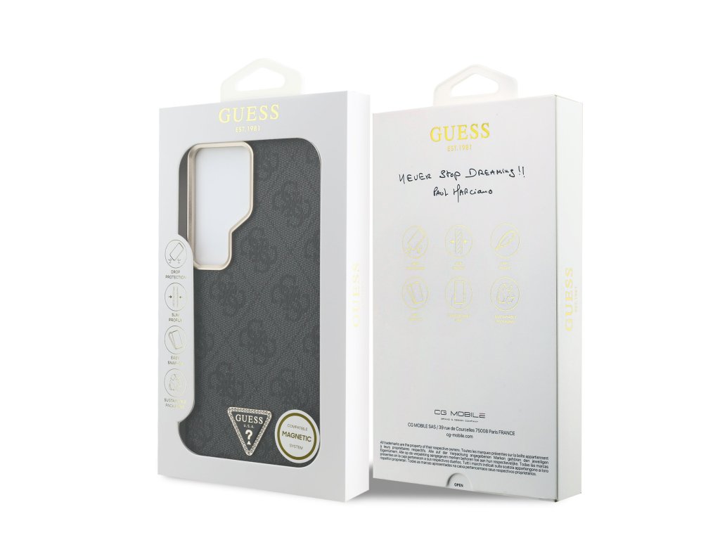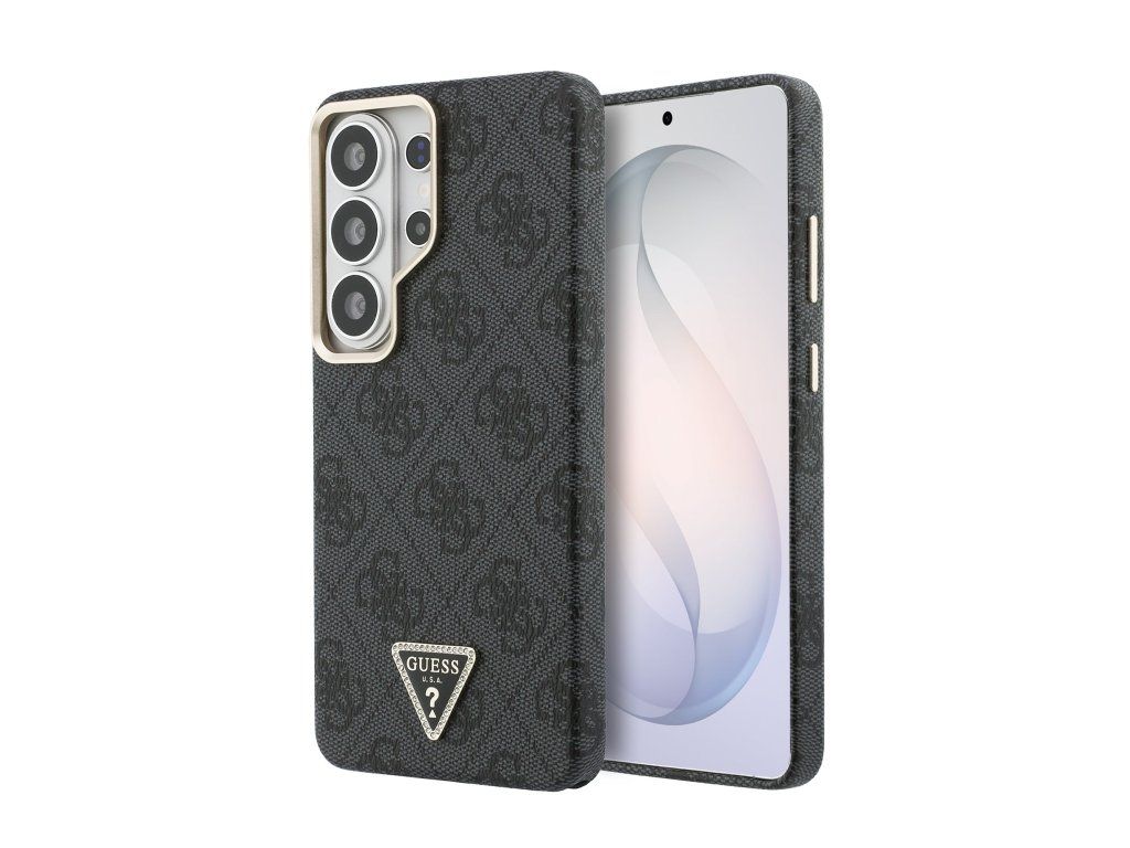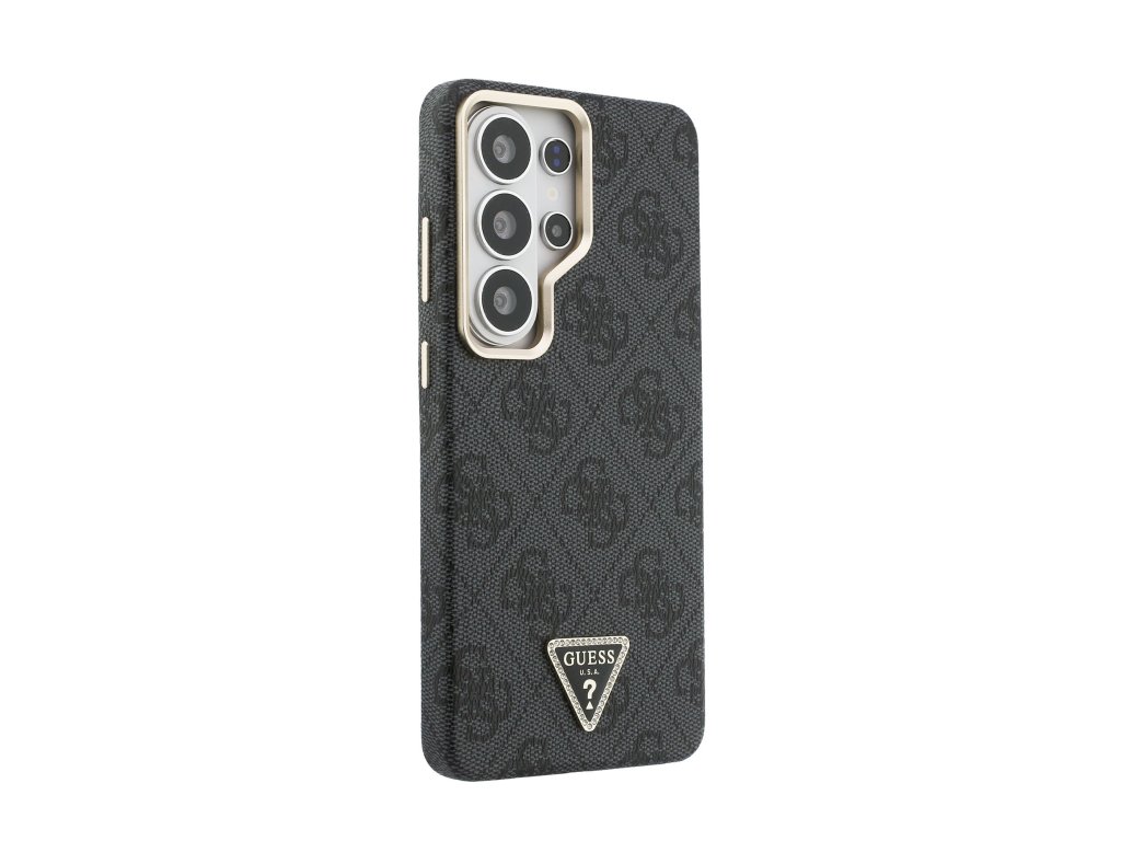 Guess PU Leather 4G Strass Triangle Logo Gold Frame Magnetic Zadní Kryt pro Samsung Galaxy S26 Ultra Black
