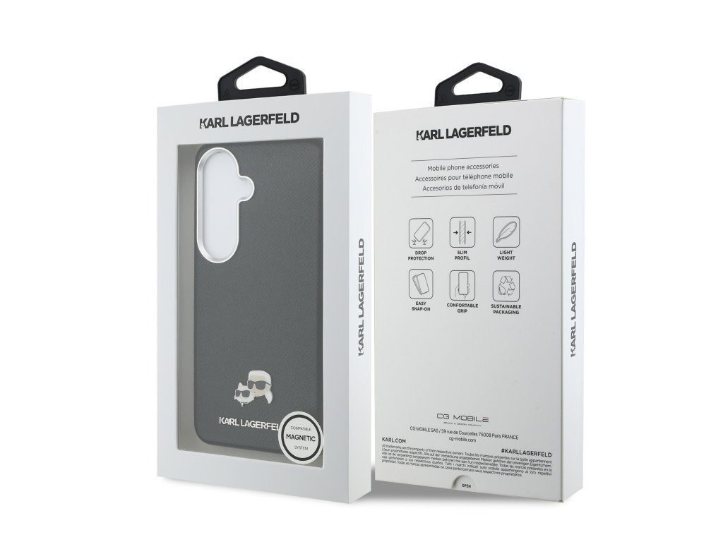 Karl Lagerfeld Grained PU Leather K&CH Heads Magnetic Zadní Kryt pro Samsung Galaxy S26 Black