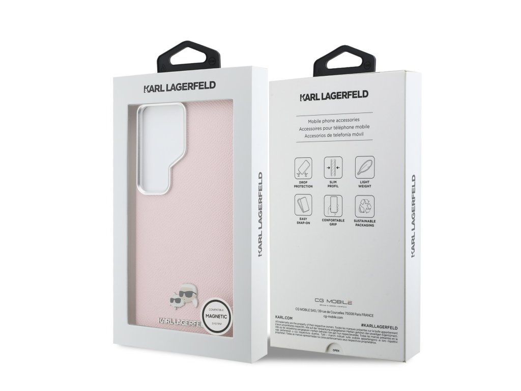 Karl Lagerfeld Grained PU Leather K&CH Heads Magnetic zadní kryt je dokonalý doplněk pro váš telefon i outfit, který kombinuje funkčnost a styl v jednom.Je vyrobený z lehkého a odolného PU s texturou zrnité kůže a nabízí skvělou ochranu a pohodlí při používání.