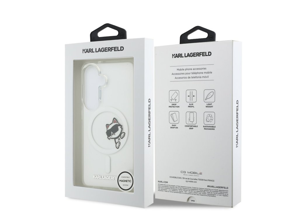 Karl Lagerfeld IML Choupette Peekaboo Logo Magnetic Zadní Kryt pro Samsung Galaxy S26 Transparent