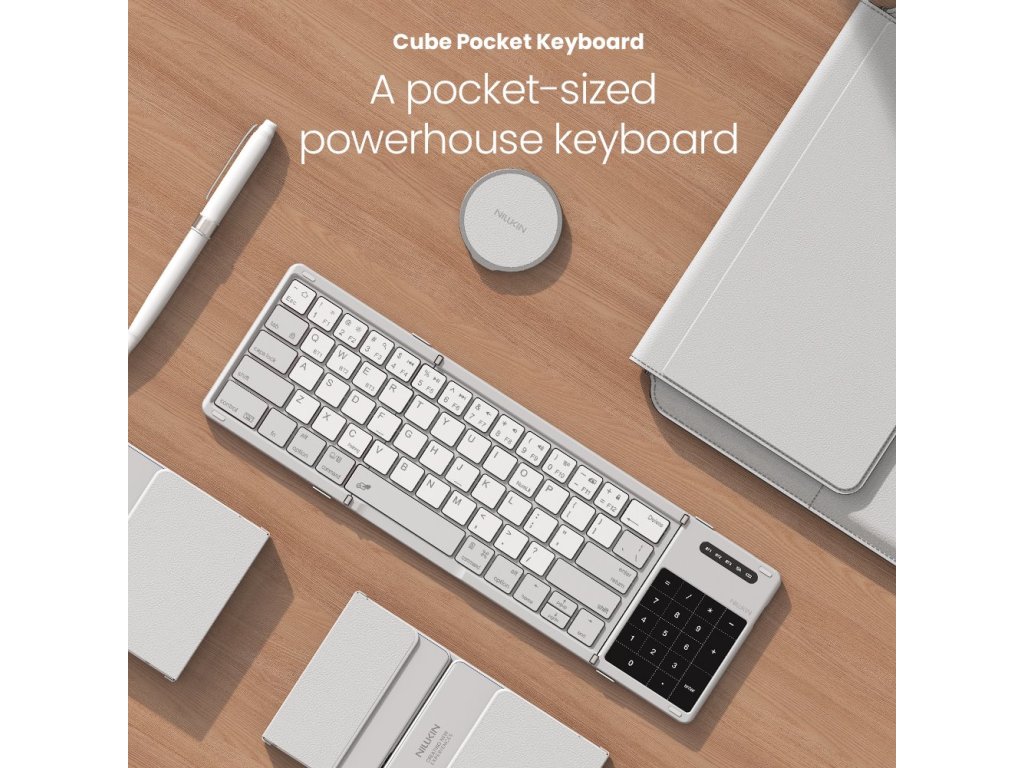 Maximální přenosnost. Plnohodnotná funkčnost.Skládací Bluetooth klávesnice Cube Pocket se snadno vejde do tašky, batohu i větší kapsy.