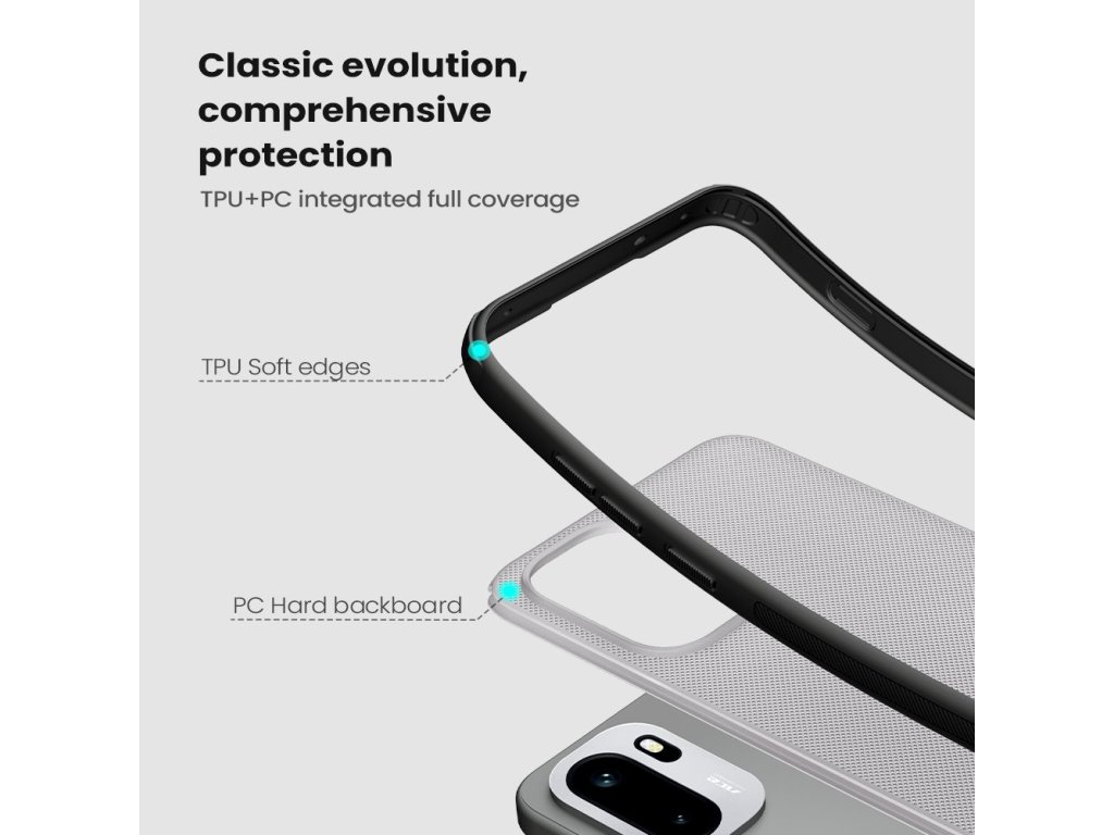 Skládá se z tvrdého a odolného plastu na zadní straně a TPU měkkého plastu na bocích.