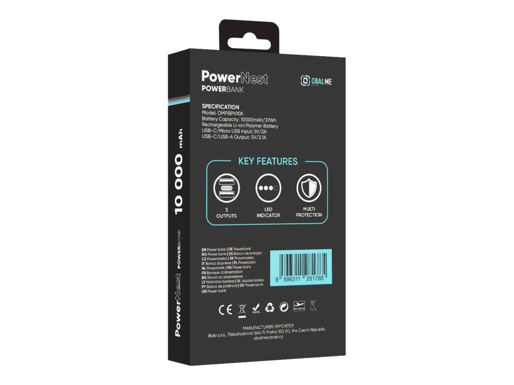 PowerNest klade důraz na bezpečnost – integrovaný čip zajišťuje ochranu proti přehřátí, přepětí i zkratu, takže můžete nabíjet naprosto bez obav. A minimalistický design v černém provedení s logem OBAL:ME dokonale ladí s filozofií značky – Fair Enough.
