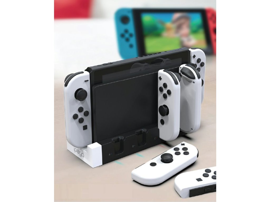 iPega PG-9186 nabíjecí stanice pro 4ks Nintendo Joy-con ovladačů a konzole Nintendo Switch.Kompaktní rozměry, snadné zapojení a dostatečný výkon pro rychlé nabíjení. Už nemusíte řešit kam s ovladači i konzolí, když zrovna nehrajete.