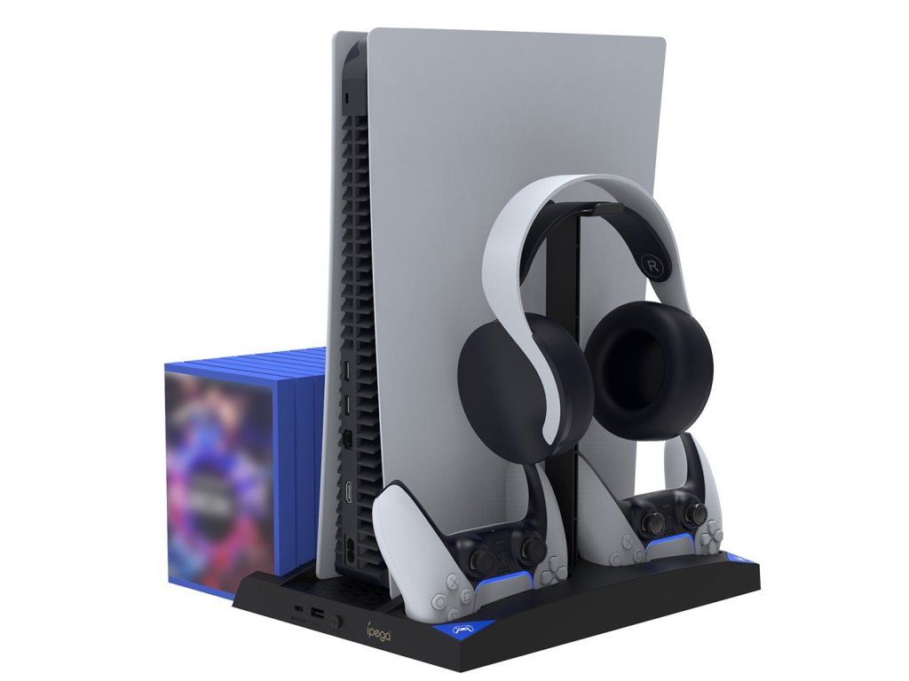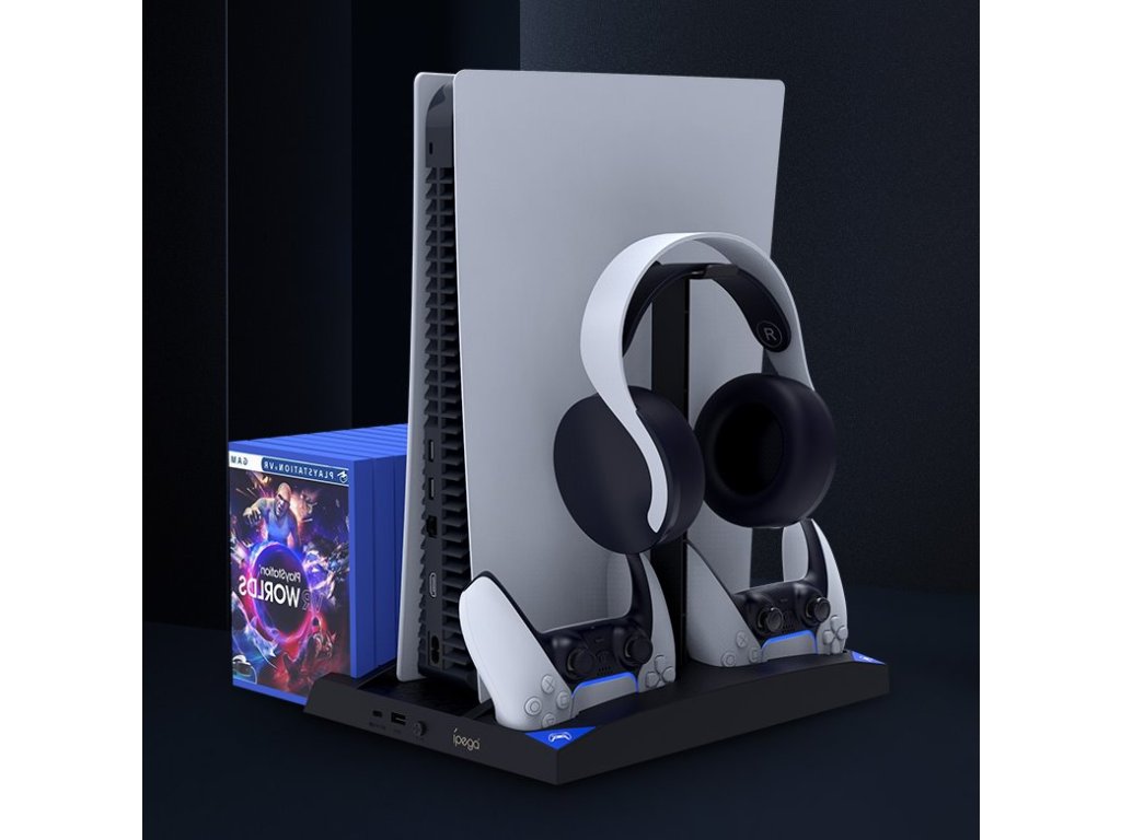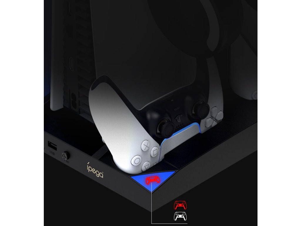 iPega P5013 dobíjecí stanice a stojan s chlazením pro Playstation 5.Praktický stojan pro váš PS5 s integrovanými ventilátory pro to nejlepší chlazení během dlouhých hodin hraní.