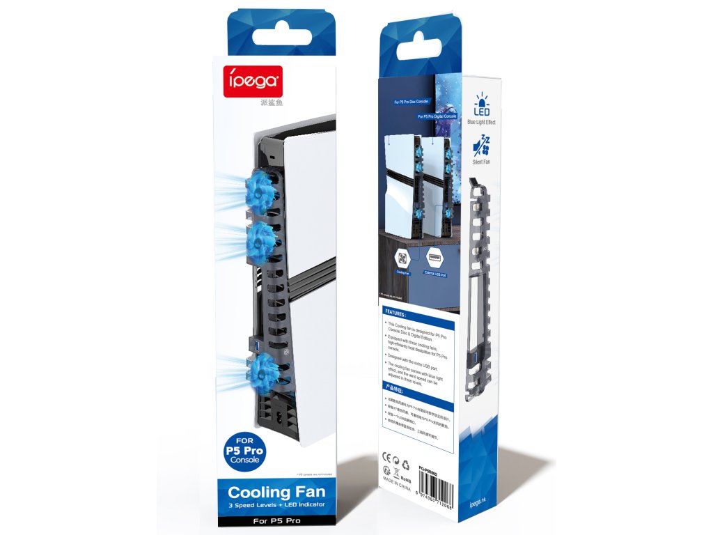 iPega přídavný ventilátor pro PlaySatation 5 Pro/Slim pro maximálně efektivní chlazení herní konzole během hraní a s USB-A výstupem.Jednoduchá instalace během okamžiku, zapojení do USB portu herní konzole a regulace otáček ve třech stupních.