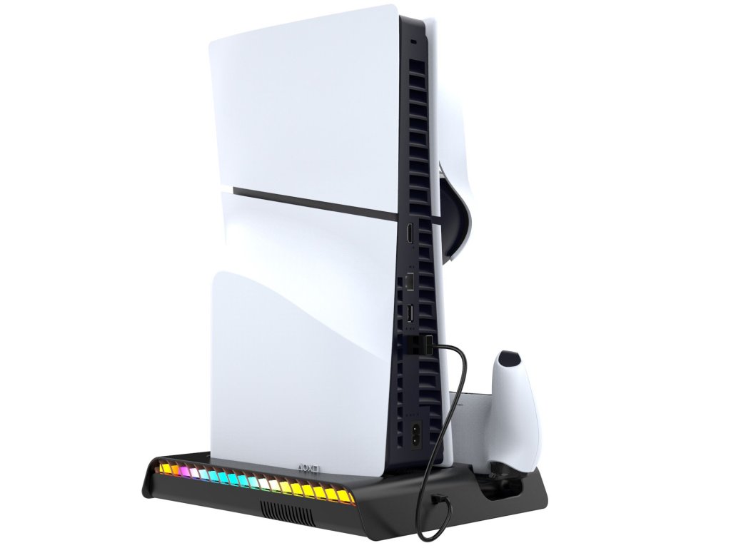 iPega P5S006 Multifunkční nabíjecí stojan určený pro Playstation 5 Slim.Praktický stojan s integrovanými ventilátory pro vaší konzoli pro to nejlepší chlazení během dlouhých hodin hraní.