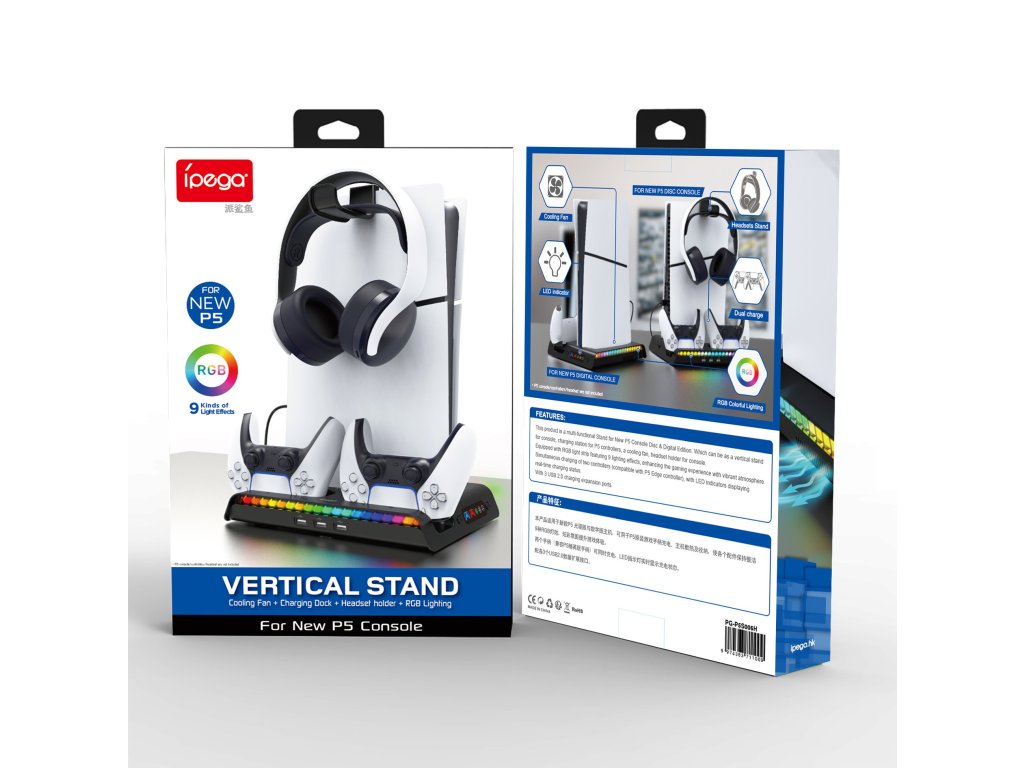 iPega P5S006H Multifunkční Nabíjecí RGB Stojan s Chlazením pro PS5 Slim Black