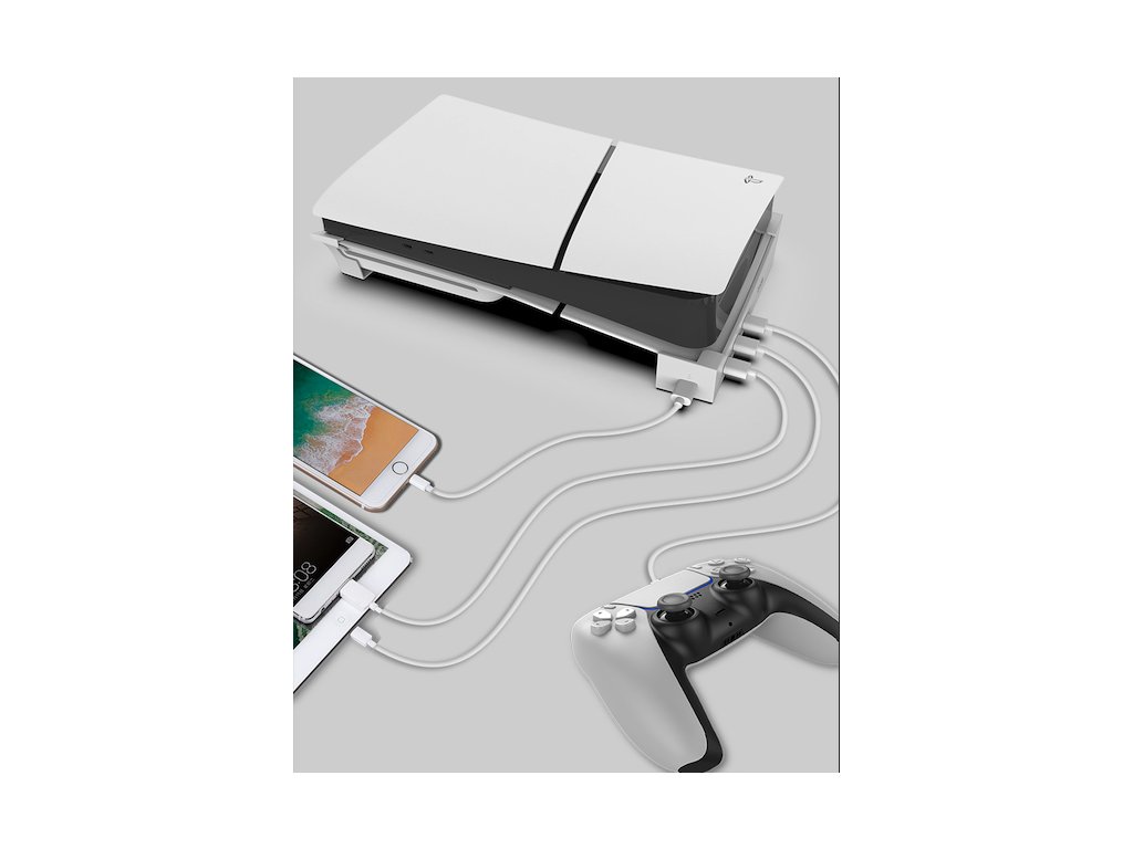 iPega P5S008 horizontální stojan určený pro Playstation 5 Slim/5 Pro.Stojan je vybaven USB Hubem, na kterém najdete celkem čtyři USB porty.