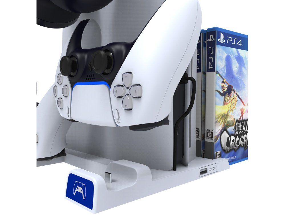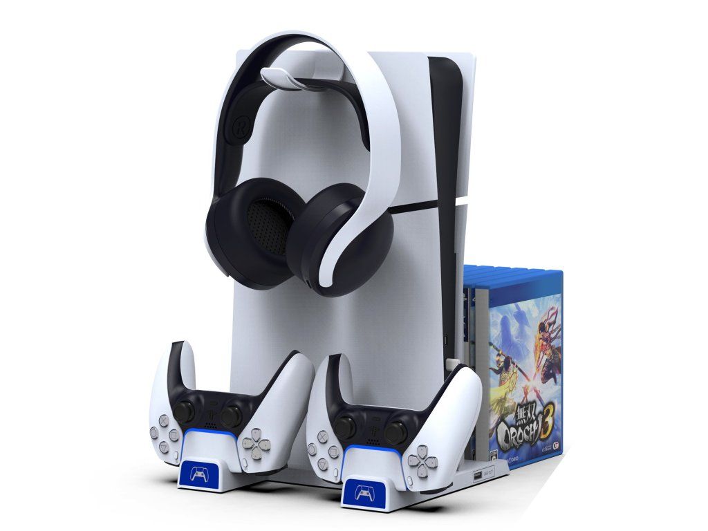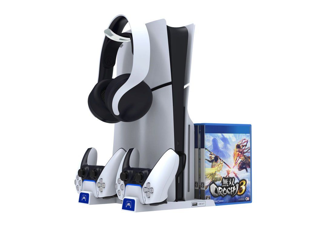 iPega P5S009 Multifunkční nabíjecí stojan určený pro Playstation 5 Slim. Stojan je vybaven nabíječkou pro dva ovladače, praktickým stojanem na sluchátka a pořadačem na oblíbené hry. Instalace nezabere prakticky téměř žádný čas. Stačí konzoli do stojanu postavit a zespodu ji zafixovat pomocí přiloženého kolíku. Konzoli ke stojanu připojíte pomocí jednoho USB kabelu. Nechybí ani indikace stavu nabíjení pro ovladače. Vlastnosti: - Stojan pro Playstation 5 Slim - Dva nabíjecí sloty pro ovladače - Odkládací háček na sluchátka - Pořadač na 10 her - LED indikace stavu nabití ovladačů - USB-A port Obsah balení 1x Stojan 1x Fixovací kolík 1x Háček na sluchátka 1x Uživatelská příručkaDoplňkové parametry