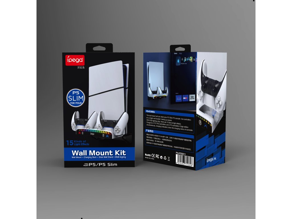 iPega P5S011 Stojan na Stěnu pro PS5/PS5 Slim/PS5 Pro s Dual Charger Dock pro PS5 Ovladač