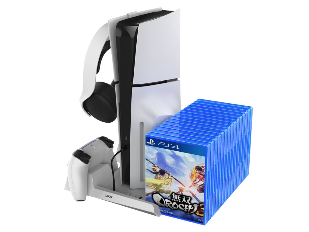 iPega P5S023 Multifunkční Nabíjecí RGB Stojan s Chlazením pro PS5/PS5 Slim/PS5 Pro White